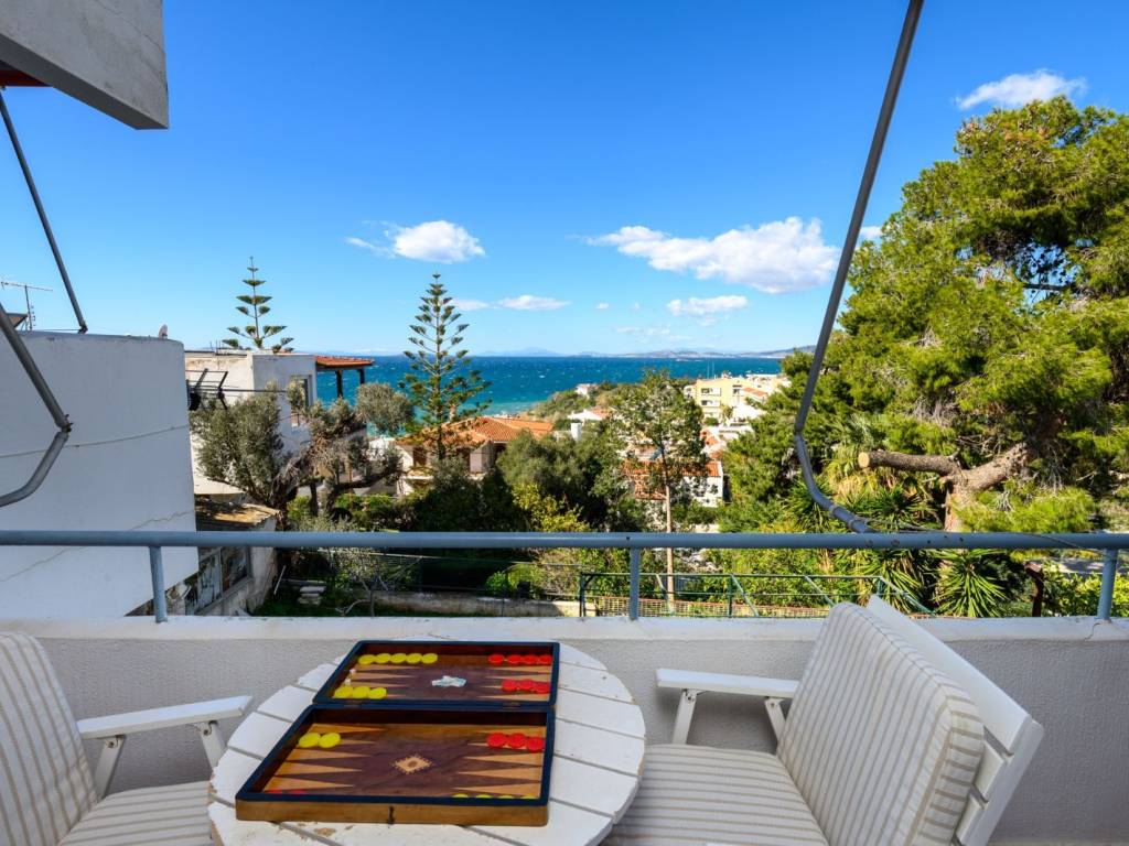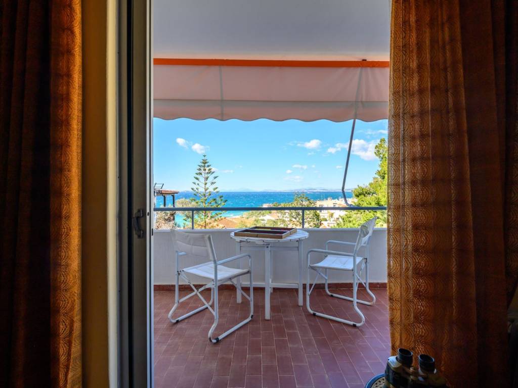First-floor apartment with a private entrance, 51 sq.m., located in a small residential complex in island-style architecture (1 large living room + 1 bedroom), built in 1981 with luxury materials (marble, Karystos stone, ceramics), aluminum window frames, and air conditioning. Dual-aspect layout, large balconies facing east and west with unlimited, unobstructed sea views and a unique sunset. Situated in a very quiet location in the A’ prime zone of Saronida (Athenian Riviera), just a 7-minute walk from an excellent beach (not the busy central one) and a 15-minute walk from all shops, supermarkets, cinemas, and Saronida’s main square. Ιt can be sold all furnished. Private storage room in the yard. Easy parking right outside. Price: €198,000.
