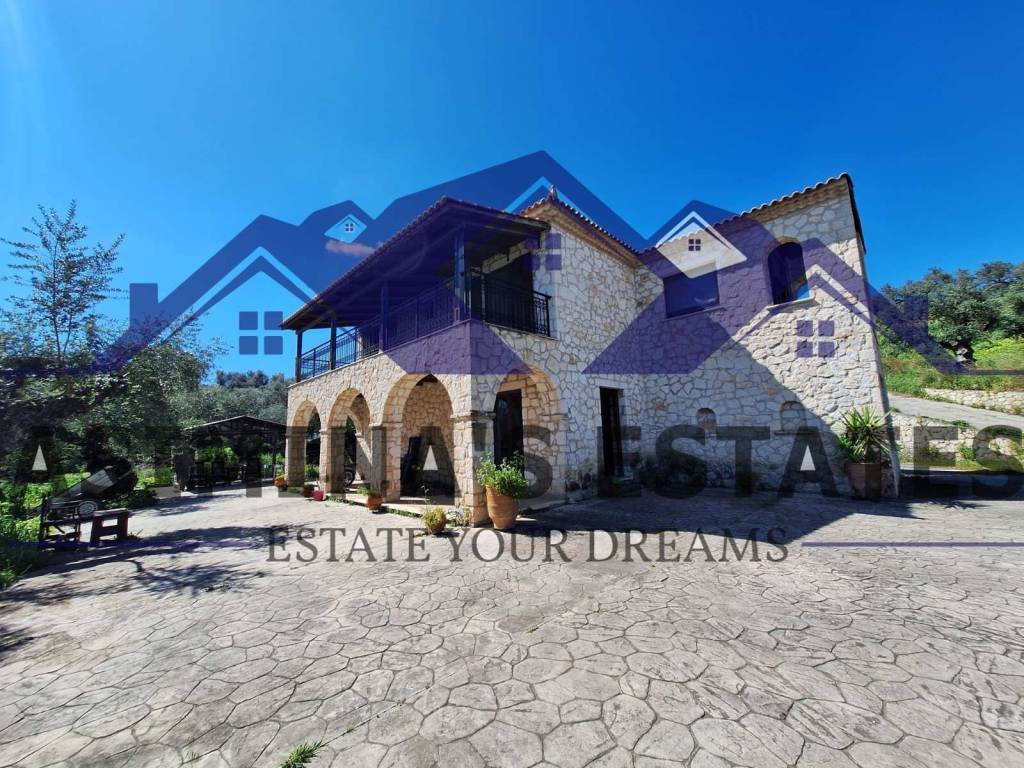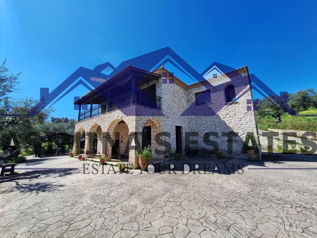 Luxury detached house in Koukla, Lithakia in Zakynthos, with a total surface of 300sq.m., for sale. It offers very beautiful sea views. It is fully furnished and equipped and consists of 4 large bedrooms, 2 bathrooms, open plan kitchen with living room with fireplace and dining area. The plot is 1.000sqm has paving and covered terraces with outdoor dining area. Distances: 12 km from Zakynthos town, 10 km from the airport.