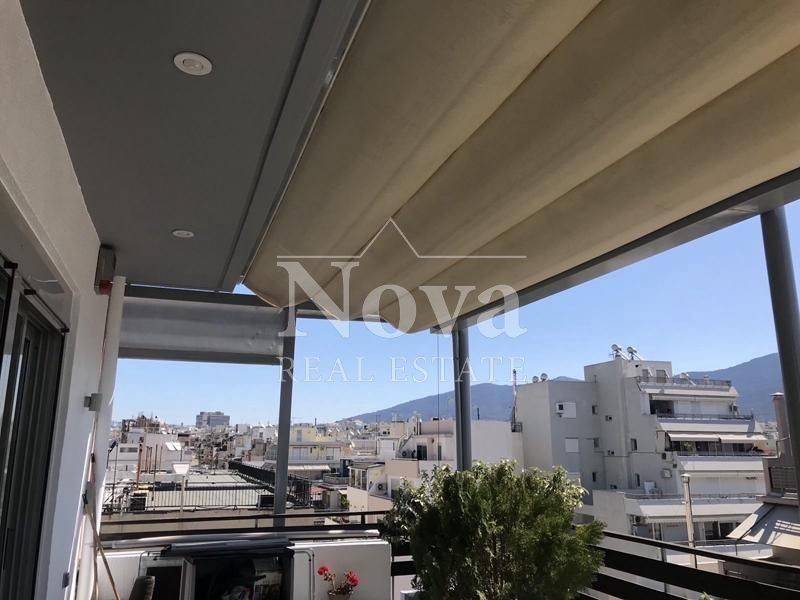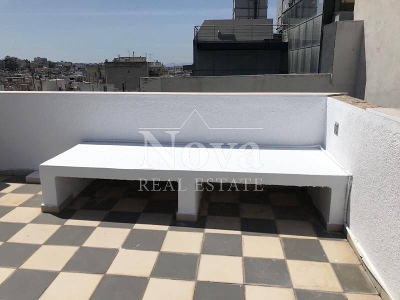 Ampelokipi (Attica - Athens Centre), Platia Mavili - Apartment 57sqm fully furnished, bedroom, 7th, penthouse, fully renovated, year built 2007, renovation year 2023, energy class C, living room, kitchen, bathroom, heating type: autonomous (natural gas), air condition, parking ground floor, quiet, exposure, luminous, unobstructed view, facade, painted, storage space 7sqm, fire place, balconies, large balconies, balcony 25sqm, tents, elevator, private terrace, terrace 55sqm, built in appliances, aluminum frames, double glaze windows, door screen, ceramic tiles floors, alarm, video doorbell, barbeque, satellite, south-eastern orientation.