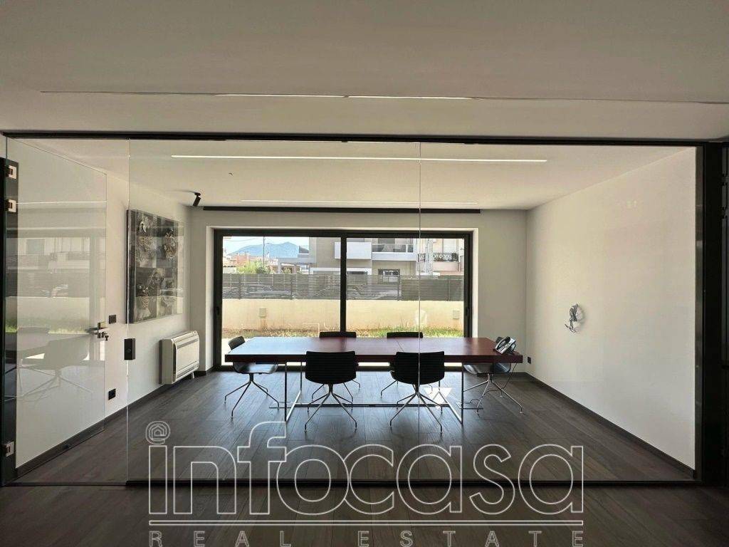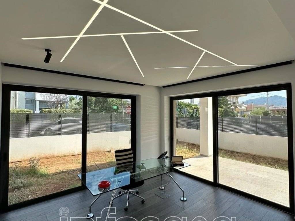 Chalandri - Patima: Professional office space of 123 sq.m. on the ground floor. It is located in a newly built and modern construction of 2023. It consists of a pre-configured space with 3 offices, a conference room, a waiting area, a kitchen, and 2 toilets. It features underfloor individual gas heating (REGAU), security door, double glazed energy-efficient windows, blinds, KNX system installation (smart office) with mobile/computer operation and remote control for lights, alarm with security cameras and mobile-connected video intercom. Additionally, it has a private garden of 119 sq.m., false ceiling, structured cabling, storage room, and an underground parking space. It is located 900 m away from Doukissis Plakentias metro station. Energy Certificate: A+. The map stamp does not indicate the exact location of the property, but an indicative nearby point. Price: 520.000€. Tel: 2106233945, email: info@infocasa.gr, www.infocasa.gr