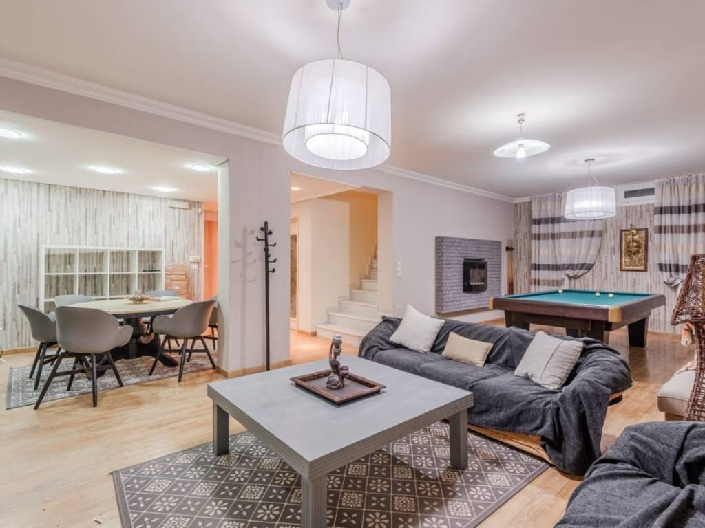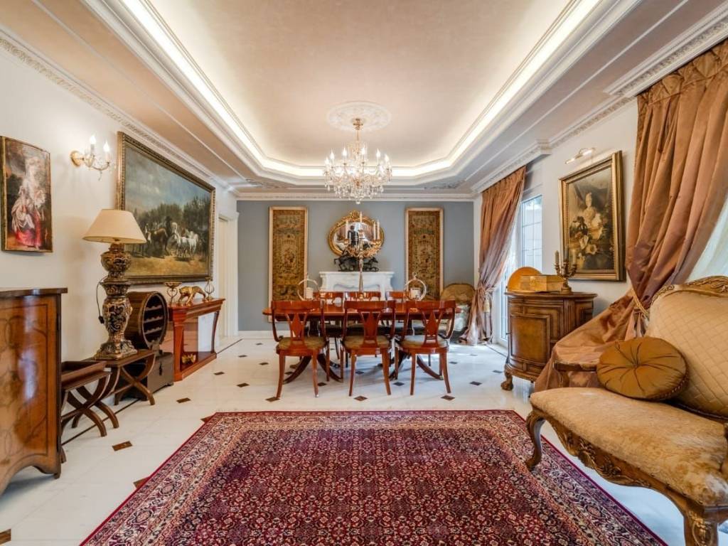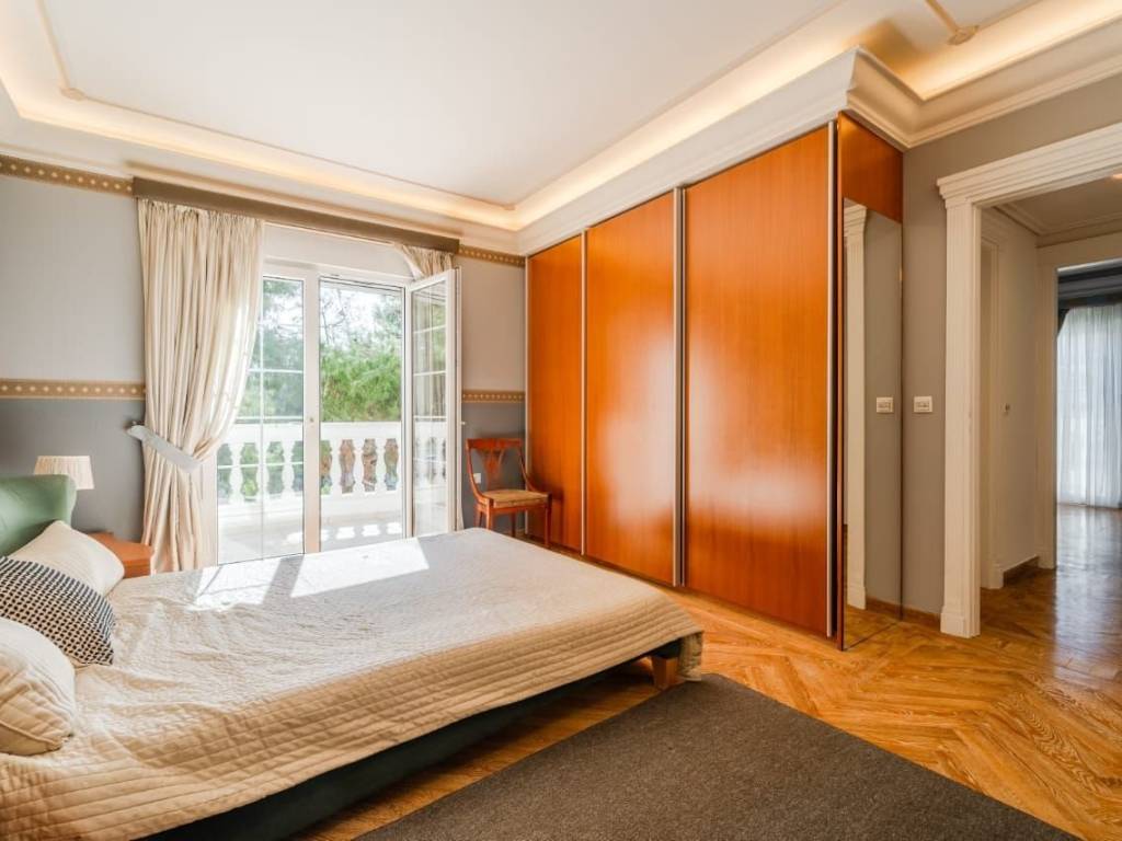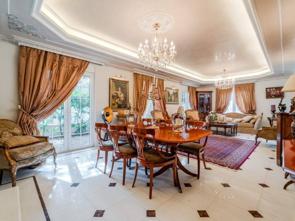 Μία εκθαμβωτική μονοκατοικία 605 τ.μ., χτισμένη σε γωνιακό, ανεξάρτητο οικόπεδο 340 τ.μ., μόλις 1,5 χλμ. από την Αθηναϊκή Ριβιέρα και σε απόσταση 50 μέτρων από το πάρκο του λόφου Πανί, που αποτελεί ένα πραγματικό αρχιτεκτονικό στολίδι στην καρδιά του Αλίμου. Με σχεδιασμό νεοκλασικού ύφους και πρόσφατη πλήρη ανακαίνιση το 2025, η κατοικία αποπνέει διαχρονική κομψότητα και σύγχρονη άνεση σε κάθε γωνιά της. Αναπτύσσεται σε πέντε επίπεδα που κατανέμονται ως εξής: • Υπόγειο 135 τ.μ. (αποθηκευτικοί και βοηθητικοί χώροι) • Ημι-ισόγειο 135 τ.μ. • Ισόγειο 155 τ.μ. • 1ος όροφος 120 τ.μ. • 2ος όροφος 60 τ.μ. Στο εσωτερικό της, η κατοικία περιλαμβάνει: • 7 υπνοδωμάτια, εκ των οποίων τα 6 είναι master • 7 μπάνια, 2 πλήρως εξοπλισμένες κουζίνες • 3 καθιστικά και 3 τραπεζαρίες • Βεστιάριο, laundry, τροφιμαποθήκη και panic room • Home cinema και προσωπικό γυμναστήριο • Αίθριο χώρο υποδοχής με εντυπωσιακό ύψος 9 μέτρων Η επίπλωση είναι προσεκτικά επιλεγμένη και περιλαμβάνει μοναδικά κομμάτια από κορυφαίους ελληνικούς και διεθνείς οίκους: Κούρτης, Βαράγκης, αλλά και τους αμερικανικούς Brownhills και Tomasville. Οι σταθερές κατασκευές, όπως οι βιβλιοθήκες, είναι από μασίφ δρύ, με ντεκαπέ φινιρίσματα και διακοσμητικές λεπτομέρειες υψηλής τέχνης. Στο ισόγειο, τα πατώματα είναι από λευκό μάρμαρο Διονύσου με διακοσμητικές τεχνοτροπίες, ενώ οι όροφοι φιλοξενούν ξύλινα δάπεδα δρύινα, σε απόχρωση ντεκαπέ. Οι οροφές είναι αριστοτεχνικά επιμελημένες με στούκο βενετσιάνο, πατίνες και επιζωγράφιση με χρυσές λεπτομέρειες, ενώ φωτιζόμενος χειροποίητος θόλος με βιτρώ δεσπόζει στο κεντρικό αίθριο, δημιουργώντας ένα δραματικό σημείο εστίασης. Ο φωτισμός έχει μελετηθεί σε βάθος, με: • Κρυφούς φωτισμούς στις ψευδοροφές • Πολυελαίους, απλίκες και spotlights Swarovski • Ειδικά dimmers για έργα τέχνης • Στον εξωτερικό χώρο, σύστημα της ιταλικής Iguzzini, με φώτα τοποθετημένα στρατηγικά προς τα πάνω, τονίζοντας τον όγκο και την αρχιτεκτονική του κτιρίου τις νυχτερινές ώρες. Η βεράντα του τελευταίου ορόφου (60 τ.μ.) αποτελεί έναν ιδιωτικό παράδεισο, με υπαίθριο jacuzzi, πλήρως εξοπλισμένο μπαρ και ηλεκτρική πέργκολα που ανοίγει και κλείνει ανάλογα με τη διάθεση και τον καιρό. Μια απόλυτη εμπειρία χαλάρωσης με πανοραμική θέα. Η κατοικία δεν διακρίνεται μόνο για την αισθητική της, αλλά και για τις υψηλές τεχνικές της προδιαγραφές: • Θεμελίωση ραντιέ βάσει εξειδικευμένης αντισεισμικής μελέτης • Πλήρες σύστημα ενδοδαπέδιας θέρμανσης και ψύξης • Μονάδα full coil Midea 28kw υψηλής απόδοσης • Εγκατάσταση φυσικού αερίου για θέρμανση, ζεστό νερό και κουζίνα • Smart home δίκτυο τελευταίας τεχνολογίας • Σύστημα συναγερμού με περιμετρικές κάμερες ασφαλείας και καταγραφικό • Εντοιχισμένες ηλεκτρικές συσκευές • Χειροποίητο μαρμάρινο τζάκι • Αντιολισθητικά πλακάκια Marazzi εξωτερικά, με ιταλικά διακοσμητικά μοτίβα Μία αστική βίλα υψηλού κύρους, ιδανική για όσους αναζητούν συνδυασμό κομψότητας, ιδιωτικότητας και τοποθεσίας. Ένα σπίτι που συνδυάζει τη μεσογειακή ατμόσφαιρα, τη νεοκλασική φινέτσα και την τεχνολογική υπεροχή — μόλις λίγα λεπτά από τις πιο όμορφες παραλίες της Αθηναϊκής Ριβιέρας.