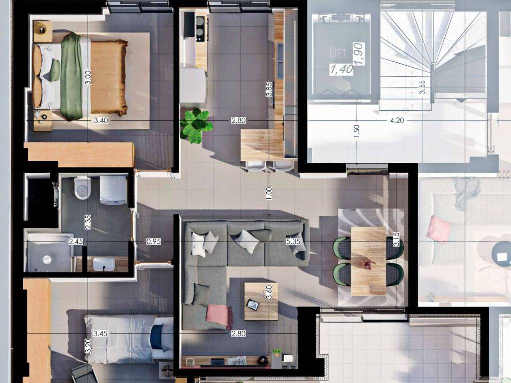 Other features that the property enjoy, include: autonomous heating system with heatpump, aluminium joinery with double glass, secure door, balcony, painted walls, satellite receiver, cable TV.