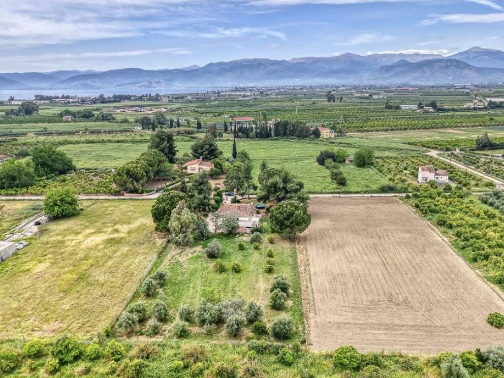 In a quiet and privileged location in Nea Tiryntha, just a few minutes from the center of Nafplio, a wonderful ground-floor detached house total area 180sqm of which the main residence is 135sqm and a 45sqm independent guest apartment,is offered for sale within a large plot of 4,000 sq m. The house has a total of 4 spacious bedrooms, 2 functional bathrooms, a large and bright kitchen, a comfortable living room and dining room, as well as an impressive terrace that offers a unique view of the emblematic Palamidi of Nafplio. The design of the house ensures comfort, brightness and a harmonious connection with the lush green environment. The property is surrounded by a wonderful landscaped garden, ideal for moments of relaxation and hospitality, while the large area of the plot offers absolute privacy and tranquility. An ideal home for those looking for a quiet retreat close to the city, with direct access to the beauties of Nafplio, without losing the feeling of the countryside. An ideal choice for a main or holiday home but also an investment option. Location: Nafplio is located in the Eastern Peloponnese and was the capital of the Greek state during the period 1828 - 1833. The historic center of Nafplio has been classified as a traditional settlement. Unique Features: Nafplio is one of the most beautiful cities in Greece and is known for its well-preserved old town that stands out for its beautiful cobbled streets, elegant neoclassical and elegant mansions and Turkish fountains. One of the most important parts of Nafplion is the Castle of Palamidi, located 216 meters above the town which has the best view of the entire Argolic Sea and the Mycenaean plain. Accessibility: Nafplio is just two hours from the center of Athens. The Argolida Bus Station serves Nafplio as well as the rest of the prefecture, connecting it with Argos, Corinth and Athens. The port of Nafplio is the largest in the eastern Peloponnese and serves mainly pleasure boats, tourist boats to the islands of the Argo Saronic Gulf and some cargo ships. Investment Opportunity: In recent years, investment interest in the area has increased significantly as Nafplio attracts a large number of Greek and foreign investors.