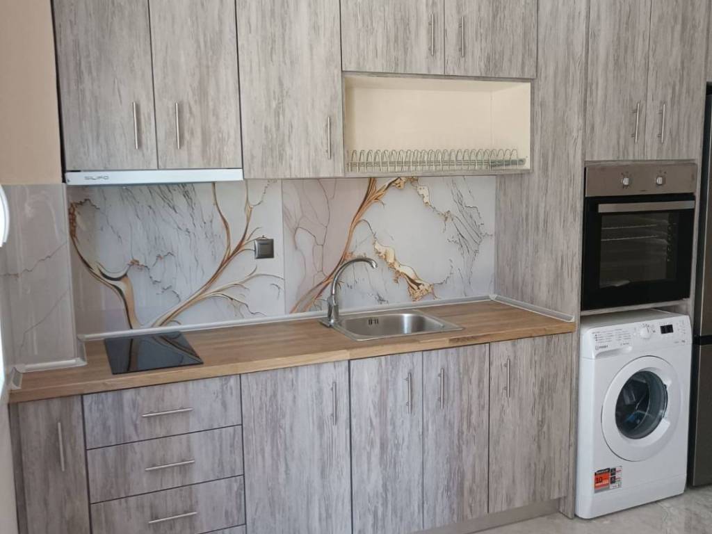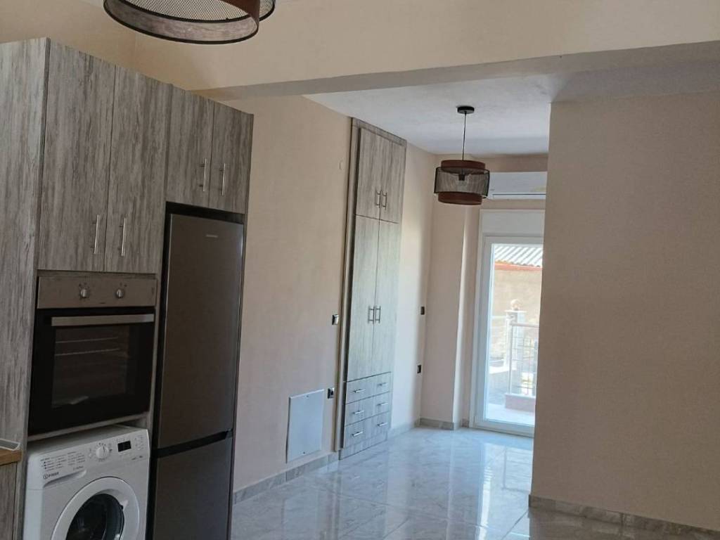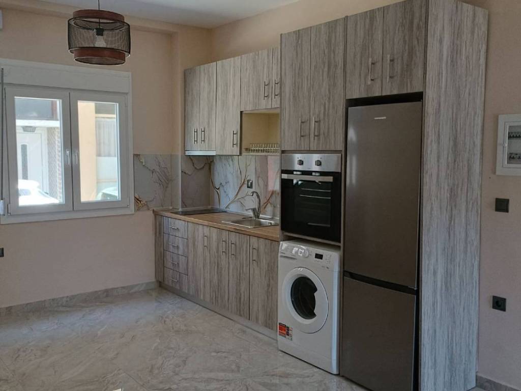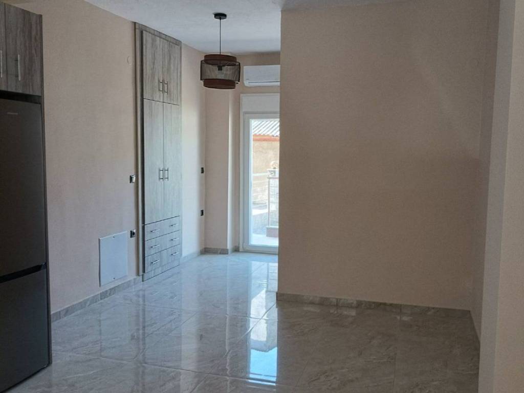 Γκαρσονιέρα ισογείου, 33τ.μ. μονόχωρη. Διαθέτει κουζίνα με φούρνο και κεραμικές εστίες, ψυγείο, απορροφητήρα, φωτιστικά, κλιματιστικά για ψύξη - θέρμανση, κοινόχρηστο ηλιακό θερμοσίφωνα και αυτόνομο ταχυθερμαντήρα πετρελαίου σε περίπτωση ανάγκης και πλυντήριο ρούχων. Δεν είναι επιπλωμένο.
