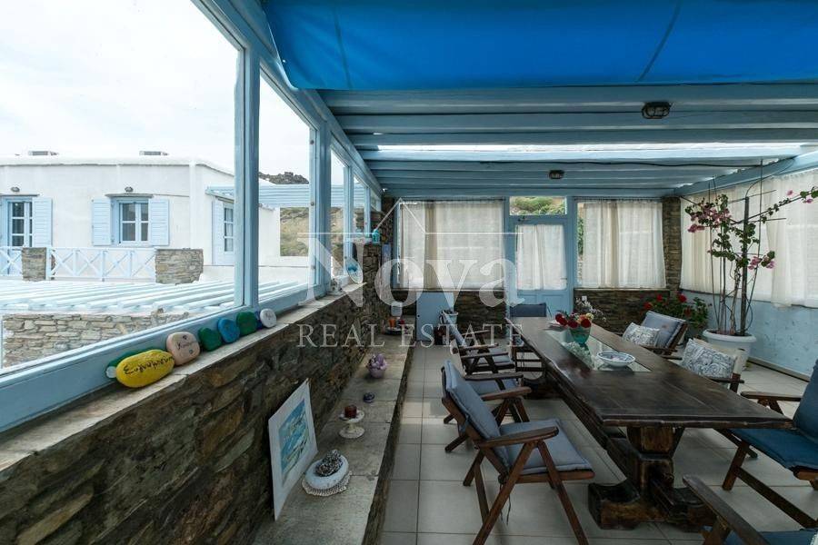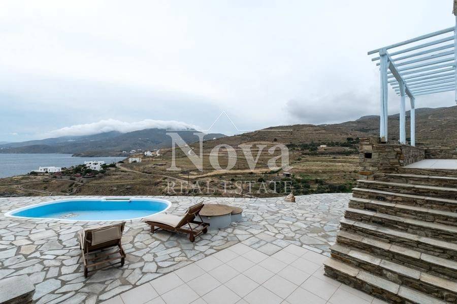 Tinos - Maisonette 350sqm plot 3200sqm, fully furnished, bedrooms 4, levels 2, ground floor - 1st, excellent condition, year built 2015, energy class D, 2 living rooms, hall, 2 kitchens, semi-outdoor space, 2 bathrooms, 2 wc, heating type: no heating, air condition, parking, quiet, exposure, luminous, sea view, facade, storage space, solar heater, fire place, large balconies, garden, private terrace, without shared expenses, swimming pool, internal stairs, barbeque, internet, pets allowed, sea front (1st row), close to market (up to 5000m), close to port (up to 5000m), close to sea (up to 500m), close to banks (up to 5000m).