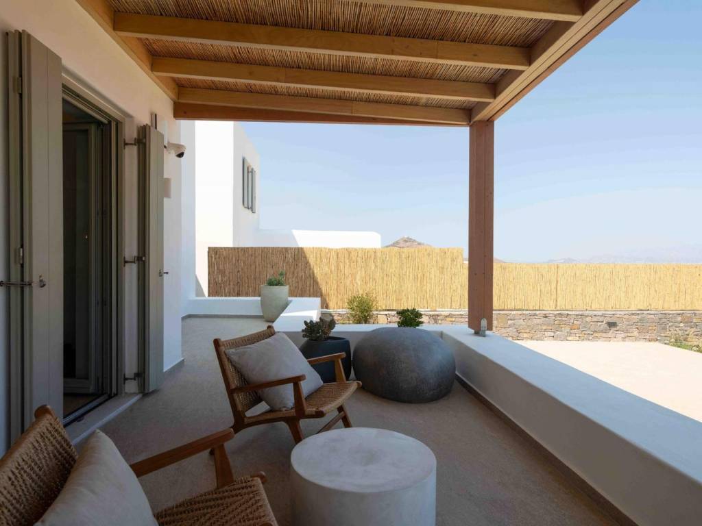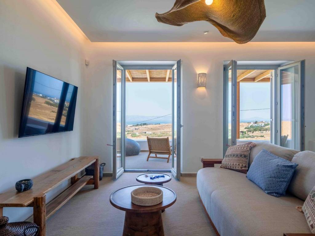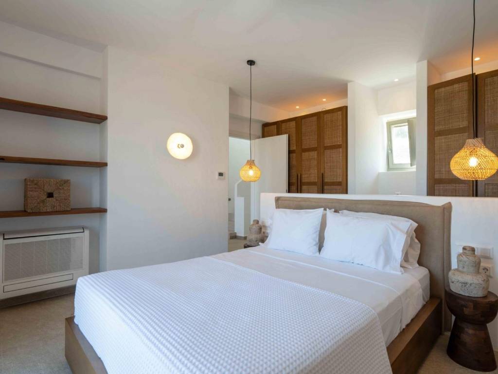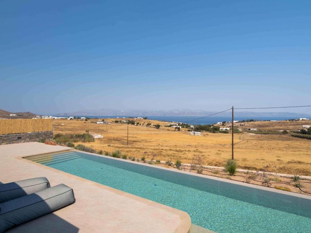 The villa is a brand new, semi detached villa of 240 sqm with exclusive outdoor living space . The villa is stratigically located in a quiet area away from the noise but in proximity (20 min walking distance) to the world famous Golden Beach of Paros and all the amenities and many restaurants. Villa Kallisti offers an unobstructed views of the sea and the neighboring island of Naxos. The villa is fully furnished and equipped with the highest quality, modern amenities such as central heating/cooling systems, zoned heating /cooling capabilities, double glazed windows, traditional solid wood external shutters, Wi-Fi , central security system and security door. The villa spreads in 3 levels: On the ground floor there is a spacious sitting/dinning area with direct connection to the outdoor living space in fully equipped outdoors kitchen and dining area and a swimming pool . The open-plan kitchen is fully equipped with all the modern appliances (conventional and microwave oven, dishwasher, wine cooler, large fridge). On the same level there is a large master bedroom (with a freestanding bed) with ensuite bathroom. This room has direct access to the pool and enjoys breathtaking views. On the second floor, there’s a seclusive large second master bedroom with an en-suite bathroom and a small private terrace where one can privately enjoy the Aegean sunset and a splendid view of the islands landscape. On the semi-basement there are two additional master bedrooms with en suite bathrooms and an additional guest wc, laundry room with a separate washer and dryer and a storage room as well The villa is decorated by the famous Italian internal designer Giulia Rinaldi from Milan with top of the line material and combines a modern/contemporary style with traditional/local touches. The outdoors space of the Villa is designed in in a typical Mediterranean style with with extensive stone work, large pergolas and lots of space surrounding the a spacious swimming pool (40 sqm2) There is an outdoors kitchen with a built-in grill and the large dining area (sitting 12 guests), ideal for entertainment. . The property has parking for 3 cars (can accommodate electric charging) The Cycladic architectural style is combined with outdoor spaces that include an impressive swimming pool, a garden with local plants and comfortable terraces for relaxation and views of the sea and Naxos. Ample parking and outdoor kitchen with grill. The residence is an ideal choice for those looking for a luxurious and comfortable living space in one of the most beautiful islands of the Cyclades. Location: Paros is located in the central Aegean Sea, it belongs to the Cyclades complex and is the third largest island in Greece. Unique Features: Paros is one of the top holiday destinations for Greeks and foreign visitors as it is distinguished for its cosmopolitan character and the intense lifestyle that it offers to its visitors. At the same time, the island offers a variety of organized or quiet beaches with clear blue waters and also has world famous beaches for kitesurfing and windsurfing. Every visitor has the opportunity to explore the most picturesque spots of the island, Naoussa and Parikia, enjoying a wide choice of cafes, restaurants and bars. Accessibility: The island of Paros is accessible from the ports of Rafina and Piraeus, ferries depart several times throughout the day and during the summer season. The island of Paros can be reached by plane as the island has an Airport with several flights operating mainly during the summer period when demand is high. Investment Opportunity: Buying property in Paros is a huge investment as the island is one of the top holiday destinations around the world, keeping its reputation high and attracting more and more investors.