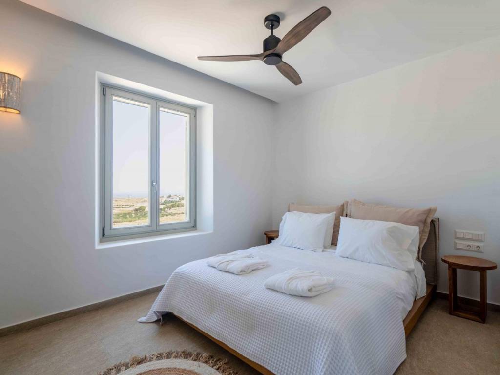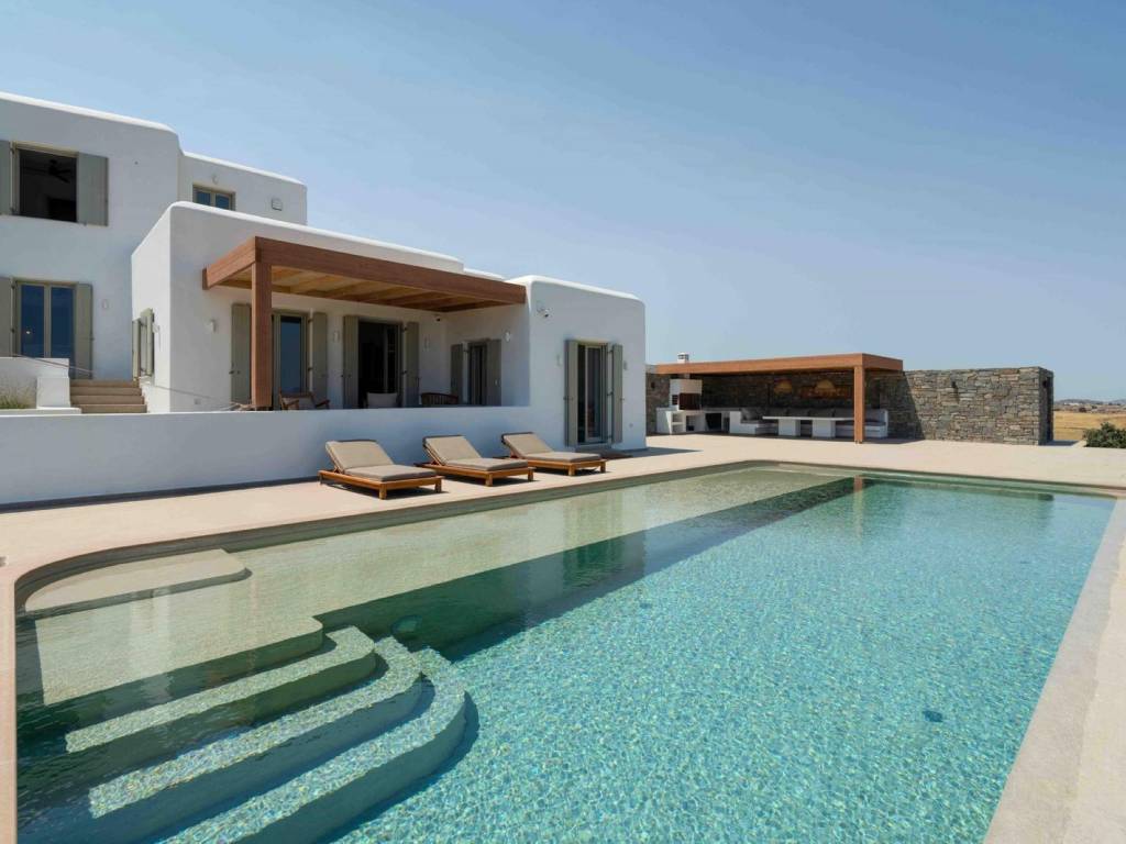 This newly built semi-detached villa (260 sqm) offers private outdoor living space and is located in a quiet area, about 20 minutes on foot from Golden Beach and nearby restaurants and amenities. The property enjoys open views of the sea and the island of Naxos. The villa is fully furnished and equipped with modern systems, including central heating and cooling with separate zones, double-glazed windows, solid wood shutters, Wi-Fi, a security system, and a reinforced entrance door. The layout extends over three levels: Ground floor: Spacious living and dining area with access to the terrace, outdoor kitchen, dining area, and swimming pool. The open-plan kitchen is fitted with modern appliances (oven, microwave, dishwasher, wine cooler, large refrigerator). This level also includes a master bedroom with en-suite bathroom and direct access to the pool. First floor: A second large master bedroom with en-suite bathroom and private terrace, offering sea and sunrise views. Semi-basement: Two additional bedrooms with en-suite bathrooms, a guest WC, laundry room (washer and dryer), and storage room. The interior was designed by Giulia Rinaldi (Milan), combining modern elements with local details. The outdoor spaces follow a Mediterranean style with stonework, pergolas, a 40 sqm swimming pool, outdoor kitchen with built-in grill, and a dining area for up to 12 guests. Parking is available for three cars, with the option for electric charging. Location: Paros is located in the central Aegean Sea, it belongs to the Cyclades complex and is the third largest island in Greece. Unique Features: Paros is one of the top holiday destinations for Greeks and foreign visitors as it is distinguished for its cosmopolitan character and the intense lifestyle that it offers to its visitors. At the same time, the island offers a variety of organized or quiet beaches with clear blue waters and also has world famous beaches for kitesurfing and windsurfing. Every visitor has the opportunity to explore the most picturesque spots of the island, Naoussa and Parikia, enjoying a wide choice of cafes, restaurants and bars. Accessibility: The island of Paros is accessible from the ports of Rafina and Piraeus, ferries depart several times throughout the day and during the summer season. The island of Paros can be reached by plane as the island has an Airport with several flights operating mainly during the summer period when demand is high. Investment Opportunity: Buying property in Paros is a huge investment as the island is one of the top holiday destinations around the world, keeping its reputation high and attracting more and more investors.