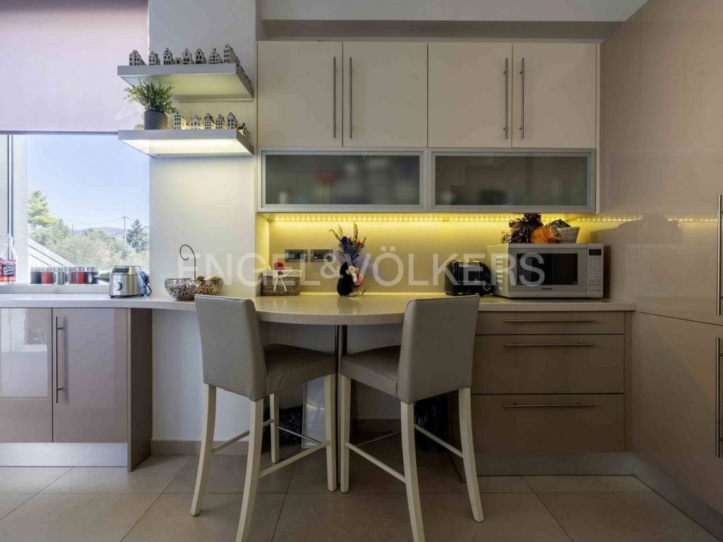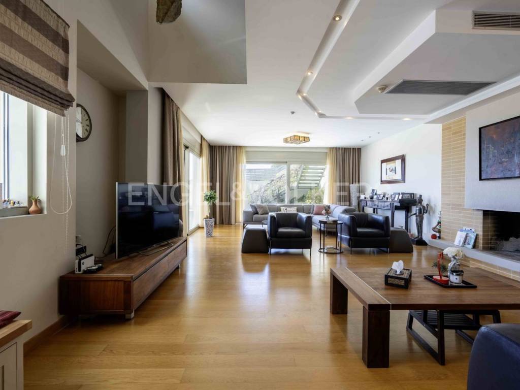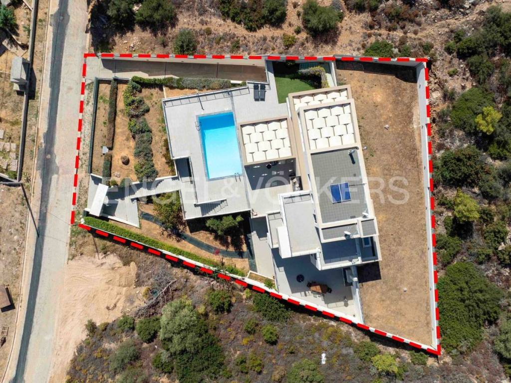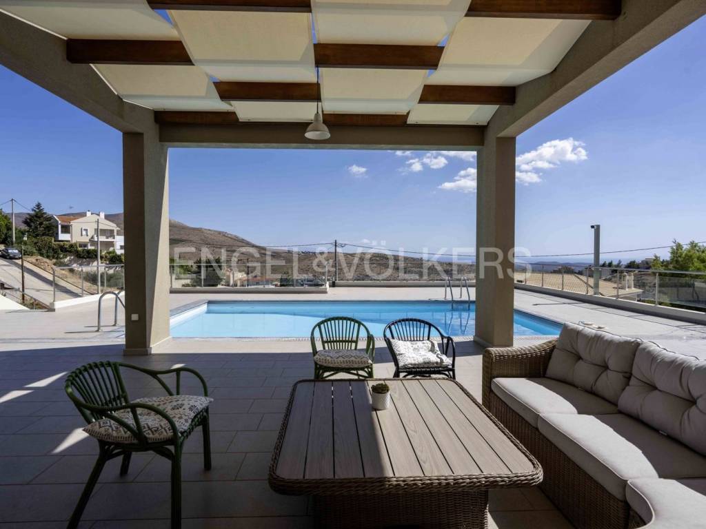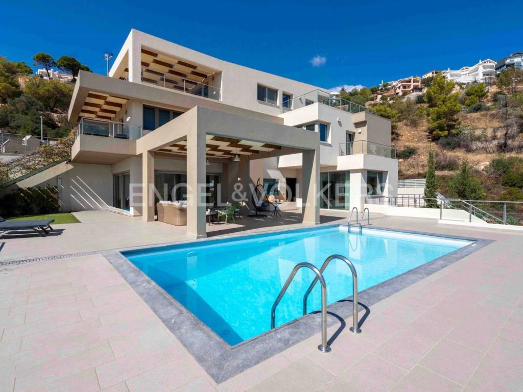 This exceptional 455 sq.m. single-family home, built in 2013 on a 1,325 sq.m. sloping plot, boasts a minimalistic aesthetic and unique character with unobstructed views. The main residence is spread over three levels, all serviced by a modern hydraulic elevator. The ground floor (128 sq.m.) features spacious, bright areas that include a large living room with an elegant fireplace, a dining area, and a WC. The independent kitchen, designed to high functionality standards, provides direct access to the outdoor area. The first floor (121 sq.m.) consists of 3 comfortable bedrooms with ample storage space, 2 spacious, modern bathrooms equipped with top-quality materials, and a laundry room. On the top floor, there is a spacious office, which can easily be converted into an additional bedroom, with direct access to a large terrace with a pergola and beautiful views. The basement, located at garden level, features an independent 85 sq.m. apartment, ideal for hosting guests or accommodating staff. This apartment includes 2 master bedrooms, a comfortable living area, and a fully equipped kitchen. On the same level, there is a large garage with 4 parking spaces, 4 storage rooms, and a gym. The outdoor space, with its BBQ area, carefully designed garden, and large 40 sq.m. swimming pool, is a true paradise, offering unforgettable moments of relaxation. This home stands out for its refined aesthetics and the use of high-quality materials throughout. Features include wooden floors, heavy-duty frames with bulletproof windows on the ground floor, modern security systems, a power generator, external thermal insulation, underfloor heating with zone control, and a central VRV air conditioning system. *The Energy Performance Certificate is currently being issued Drafi is one of the most beautiful and green suburbs of Attica, built on the southeastern foothills of Penteli. With an excellent layout and unique views, it is an ideal place to live, combining a refreshing green area with large streets and luxury houses. A pole of attraction for lovers of nature, hiking and the waterfall on Achaion Street, just 50 meters from the main road. The area has experienced great residential development in recent years due to its excellent location which gives easy access to central commercial points, Attiki Odos and the Metro, El.Venizelos airport and the port of Rafina. A stone's throw from the beaches of southeast Attica. It is characterized as a "Model State" and offers a high level of living and comfort.