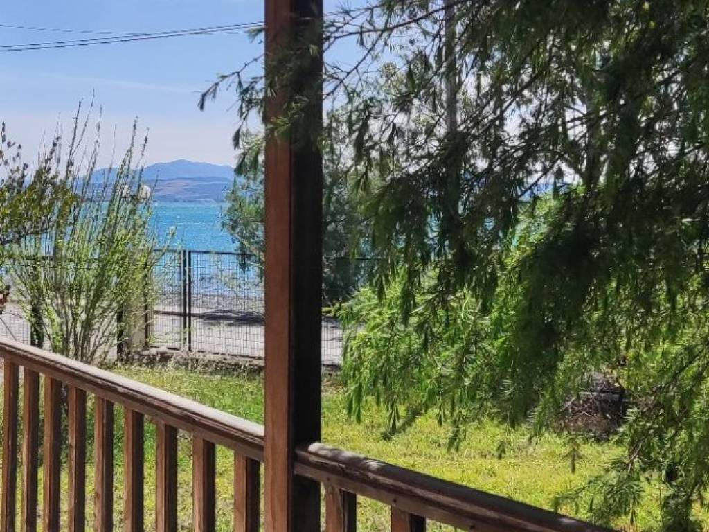 In Politikon Beach, with a 38m frontage on the coastal road and opposite the pebble beach, next to luxury rental apartments and country houses on a fenced, corner plot of 770m2, an elevated, airy, ground floor with tiled roof house of a total area of 122.82m2 is for sale, consisting of the main house, an independent adjoining studio apartment and an independent storage room of 5m2. The main house is distinguished by its large spaces, simplicity and excellent interior layout consisting of the living room-living room, the large independent kitchen, the comfortable bathroom and 2 spacious bedrooms with wardrobes, one of which has its own W/c (Masterbedroom). The large windows create excellent natural lighting conditions inside the house and provide a nice view of the garden with trees and ornamental shrubs. The balcony offers direct views of the sea and the surrounding landscaped area, offering moments of joy and relaxation. The small studio can be used as a guest house for visitors and friends as it has independent access and consists of a comfortable bathroom and a bathroom. The garden is irrigated by a borehole and the property has all the necessary transfer documents. Price: 370000euro