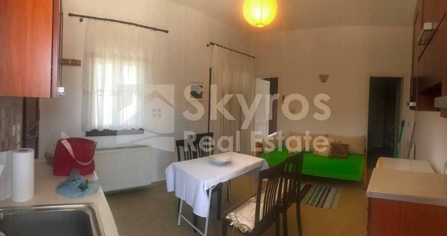 Δυο αυτόνομες κατοικίες στην καρδιά της Χώρας Σκύρου, σε άριστη κατάσταση. Το ισόγειο είναι 45,60τμ με υπόγειο 19,95τμ και 25 τ.μ. βεράντα Ο όροφος 39,25τμ με μπαλκόνια περίπου 8 τ.μ. Το καθένα διαθέτει κουζίνα με καθιστικό σε ενιαίο δωμάτιο , μπάνιο με μπανιέρα και κρεβατοκάμαρα Διαθέτει εγκατάσταση για κεντρική θέρμανση και air condition, ξύλινα ενεργειακά κουφώματα με ανάκληση και σίτες . Έτος κατασκευής 2013 Πωλείται ενιαίο