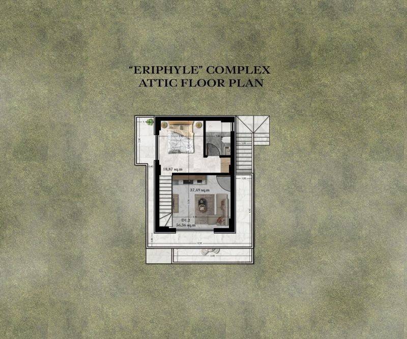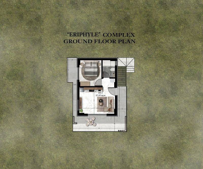 • 11 Ground floor apartments from 36.95sq.m. to 39.55sq.m., consisting of a living room with kitchen, 1 bedroom, 1 bathroom.