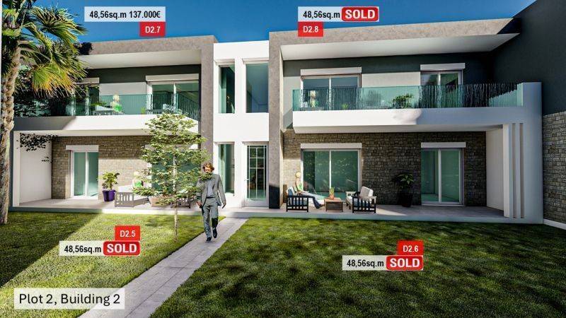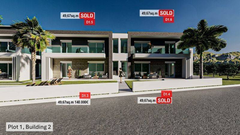 • 6 Ground floor from 48.79sq.m. to 49.90sq.m., consisting of a living room with kitchen, 2 bedrooms, 1 bathroom.
