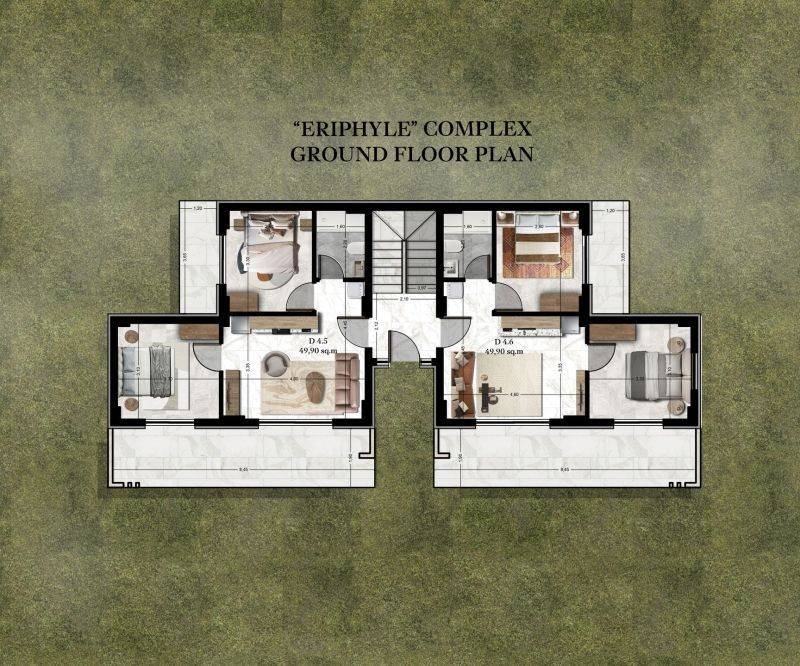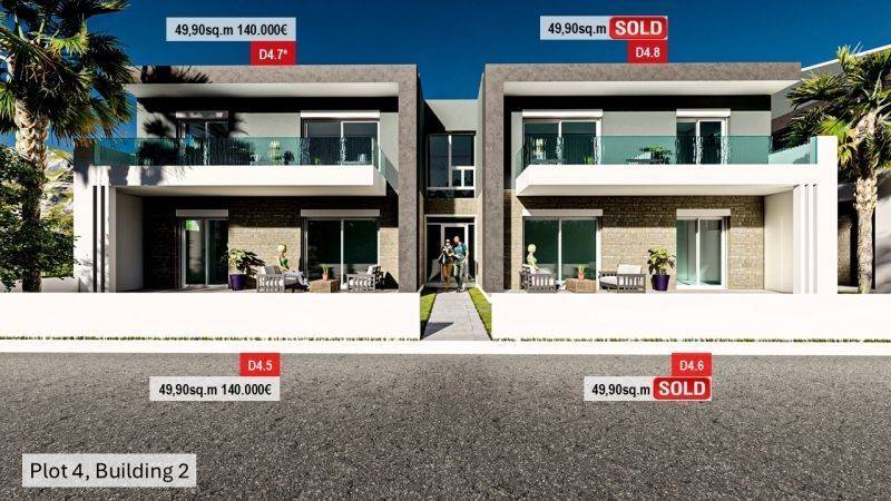 • 6 Ground floor from 48.79sq.m. to 49.90sq.m., consisting of a living room with kitchen, 2 bedrooms, 1 bathroom.