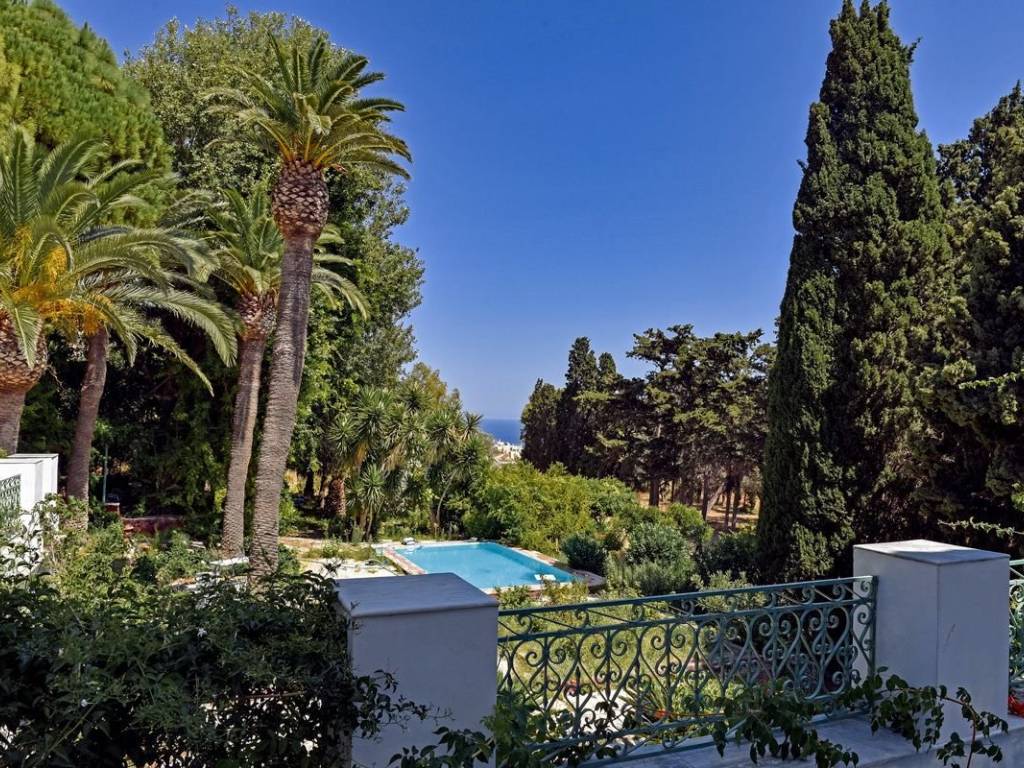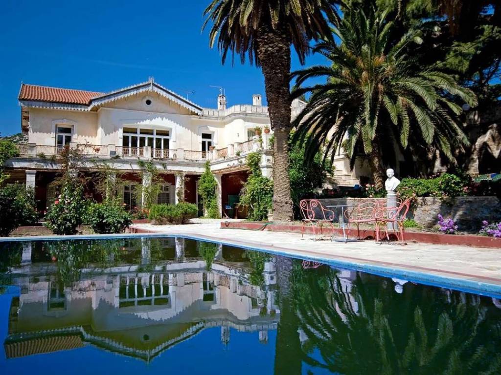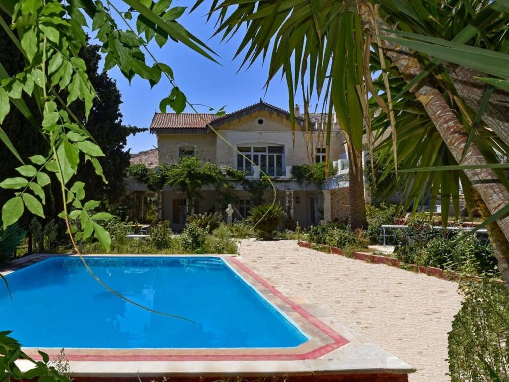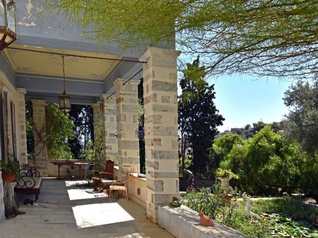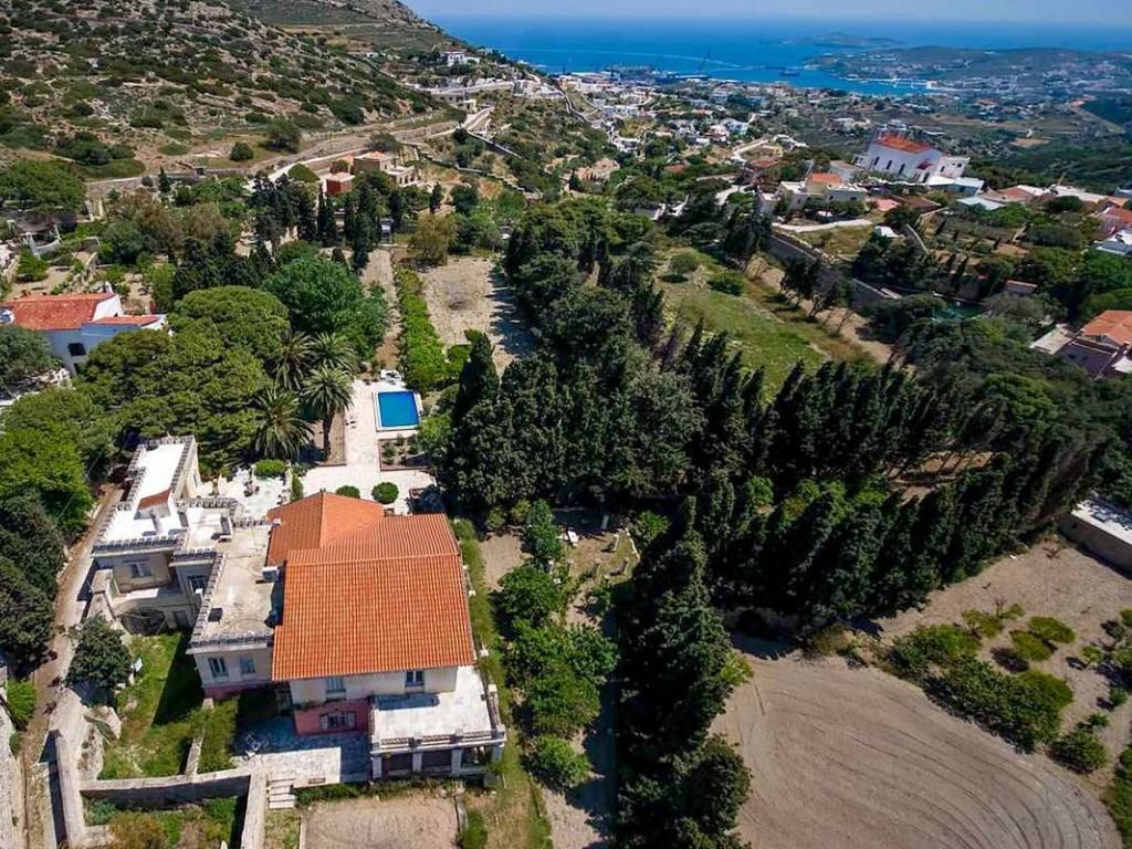 An extraordinary opportunity to acquire one of Syros’ most distinguished properties — a grand neoclassical mansion set within 12,757 sq.m. of immaculate formal gardens, in the prestigious enclave of Episkopeio. Ideally located just 4 km from the capital Ermoupolis and within easy reach of the island’s finest beaches, this estate offers both an exclusive lifestyle and outstanding investment potential. Originally built in 1884 and masterfully remodeled by renowned German architect Ernesto Ziller, the residence seamlessly blends timeless elegance with authentic Cycladic charm. The main residence spans two expansive levels and includes 11 principal rooms, two fully equipped kitchens, and two bathrooms, all supported by a full central heating system. The ground floor offers 230 sq.m. of interior space, while the first floor adds an additional 256 sq.m., providing generous living and entertaining areas. Complementing the main home are two independent guesthouses, each with a private bathroom, totaling 25 sq.m. Outdoors, the estate impresses with 595 sq.m. of terraces and covered areas, a stunning swimming pool crafted from an original stone water tank, and eight landscaped avenues that wind through lush, forest-like gardens. The grounds also feature three tranquil artificial lakes, numerous outdoor seating areas, and a rich mix of 450 cypress trees alongside fruit and ornamental plantings. A fully automated irrigation system, supplied by a 15-meter-diameter stone well, supports the extensive gardens. Ensuring complete privacy and timeless grandeur, the entire property is enclosed by a tall, historic stone wall. This landmark property offers exceptional flexibility: a prestigious private residence, an exclusive hospitality venture, or a boutique event venue. With its rich heritage, architectural integrity, and unique natural setting, it is a rare asset with strong long-term value. A once-in-a-generation investment opportunity in the heart of the Cyclades. Syros: A Timeless Gem in the Heart of the Cyclades Located at the very center of the Cyclades, Syros lies just 83 nautical miles from Piraeus and 62 from Rafina. As the administrative capital of the South Aegean, Syros remains vibrant year-round, with Ermoupoli—the island’s majestic capital—buzzing with life, cultural events, and festivals in every season. Unique Features Syros effortlessly blends the enchanting Cycladic landscape with refined Western elegance. The island is adorned with architectural masterpieces: the grand Town Hall, the historic Apollon Theater, stately neoclassical mansions, and the stunning Church of Agios Nikolaos—all testament to its rich cultural heritage and cosmopolitan flair. Accessibility Ermoupoli, the heart of the Cyclades, boasts excellent connectivity. Daily ferry routes link Syros to both Piraeus and Rafina, with multiple morning departures during the high season. Additionally, Syros State Airport ensures swift access via air, with frequent flights throughout the summer months catering to rising demand. Investment Opportunity With its sophisticated charm, year-round vitality, and ever-growing appeal as a luxury destination, Syros presents a compelling opportunity for investors. Its unique blend of natural beauty, cultural richness, and stately allure continues to attract high-end tourism and sustainable development interest.