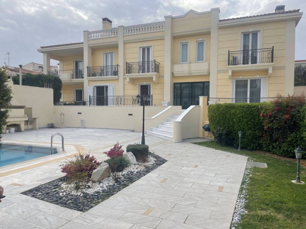 In the residentially developed and quiet Gerakas, this impressive corner maisonette of 420 sqm in a complex of three residences, built in 1999, within a privately owned plot of 490 sqm, with landscaped garden and large communal pool. The entrance to the property is via an elegant door leading to the outside area, where the swimming pool and a lush garden dominate. Crossing the courtyard, the visitor is directed to the main entrance of the complex of three maisonettes. Entering through the heavy iron front door, we are led into a spacious hallway where there is a lift, which provides access to all levels of the residence. The main entrance to the maisonette leads to an impressive marble hallway with a distinctive design, leading to the bright dining room, stylish open-plan kitchen and spacious living room with fireplace. Direct access to the terrace overlooking the pool enhances the sense of connection between the interior and exterior, while luxury and the use of high quality materials - such as marble - are evident in every detail. The ground floor is completed with a guest WC. On the first floor there are three master bedrooms with balconies, while the attic serves as a self-contained retreat with its own bedroom, bathroom and spacious veranda with unobstructed views. The semi-basement of 100 sqm., fully configured as an open-plan space with kitchen, fireplace and bathroom, offers multiple possibilities of utilization, either as an independent apartment or as a hospitality space, while maintaining a sense of privacy and comfort. The residence has marble and wood floors, aluminum windows with double glazing and screens, independent heating system per level with oil, boiler, air conditioning, safe, storage room, as well as two underground parking spaces. The combination of architectural elegance, functionality and quality of construction makes the property a unique choice for both owner-occupation and high quality investment. Gerakas is a municipal community and the seat of the Municipality of Pallini in the Regional Unit of East Attica, within the Region of Attica. It is located on the northeastern edge of the Athens Urban Complex and is considered a northern suburb of Athens. The population of the area is 30,000, the area covers 11 square kilometers, and the density is 2,722 inhabitants per square kilometer according to the 2011 census. Known neighborhoods of Gerakas include Gargittos, Stavros, and Balana. It borders Agia Paraskevi, Penteli, and Chalandri. It is a suburb that has experienced rapid development in recent years. With the passage of the Attiki Odos and the metro, its character changed dramatically, transforming into an urban area of Athens with simultaneous modernization of its infrastructure. In the northwestern part of the area lies the Koufos Hill (at the foothills of the observatory) on the border with the Pentelikos settlement of Agios Dimitrios. Gerakas is being developed at a fast pace following the establishment of the Doukissis Plakentias metro station, without losing its urban beauty. By law, houses are constructed only with tiled roofs, there are many parks, and generally, it is a beautiful environment for families with children.