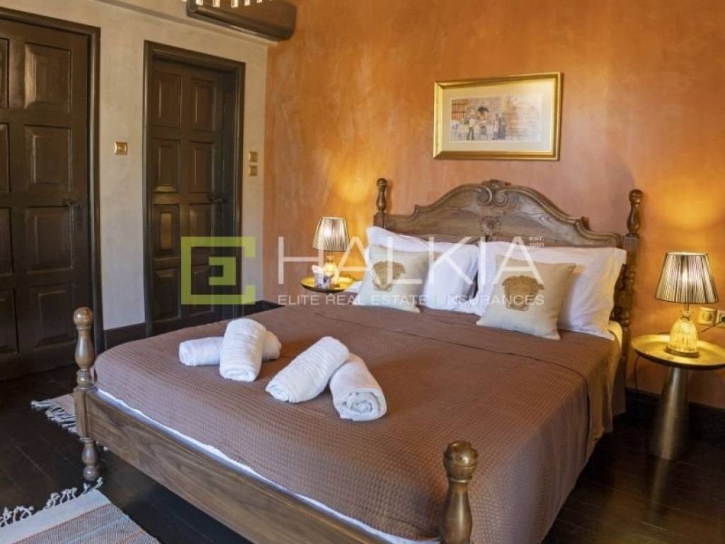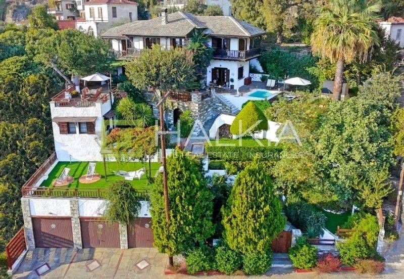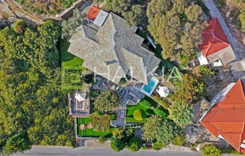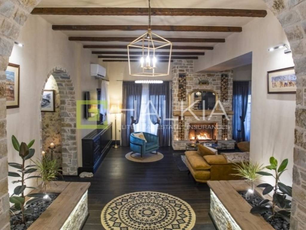 Welcome to this magnificent residence nestled in the prestigious foothills of Mount Pelion, Ano Volos. A statement of luxury and sophistication. Spanning a substantial internal area of approximately 300 sm, with additional outbuildings covering over 100 sm, this property is the epitome of elegant living. The home boasts a breathtakingly stylish interior that seamlessly combines contemporary design with traditional comfort and functionality. Each room is meticulously crafted to create a unique ambiance that is both inviting and impressive. Upon entering, you are greeted by an eye catching entrance hallway where you'll find a remarkable two-tier lay out leading to the speak easy style cocktail bar and salon , perfect for showcasing your cherished wine and and liqueur collection. Whether you're a connoisseur or an aspiring enthusiast, this feature transforms the ordinary into the extraordinary and offers a unique talking point among guests. As you explore further, you'll discover a generously proportioned open plan salon and dining area that can comfortably cater for all of your family and friends. As you open the huge double barn doors from the salon, the residence's thoughtfully laid out floor plan reveals a luxury and brand new farmhouse style kitchen that connects the two making the space suitable for every occasion. From the sumptuous living area with a hand crafted inglenook fireplace and formal dining spaces to intimate corners for retreating from the daily hustle, this home is designed for a discerning buyer who values elegance and refinement. Upstairs you will find the principle bedroom suite, the bedroom itself offering a private balcony with insatiable views over the Pangesetic gulf, Episcopee hill and grounds as well as benefiting from a huge double/ ceiling high illuminated wardrobe and a phenomenal en-suite shower room. There are a further 3 large bedrooms all of which benefit from en-suite facilities, one of which comes with a luxury 4 person hammam, storage and the same incredible views from private balconies. In addition the property benefits from an attached cottage which is entirely self-contained and boasts a bedroom, en-suite shower room and large kitchen. There is also substantial garaging adjacent to the main house. It features heating system by heating pump, Aircondioting at all bedrooms and fully comprenhensive alarm and cctv system. Extending the luxury outdoors, the property features a pristine swimming pool with spa- a haven for relaxation and entertainment. It is accompanied by brand new Swedish sauna perfect for the active residents or guests to enjoy after a Pelion skiing trip. For the entertainers, there is a wonderful outdoor kitchen with BBQ to enjoy year round fun. Overall, this isn’t just a home, but a lifestyle choice, offering an extraordinary living experience with a wealth of amenities that cater to the most exquisite tastes. Nestled in the idyllic village of Ano Volos which offers an excellent selection of local shops and amenities including a post office, pharmacy, restaurants and transport links to the Sporades only a ten minute drive into Volos. (The furnishing of the property is available at an additional cost)
