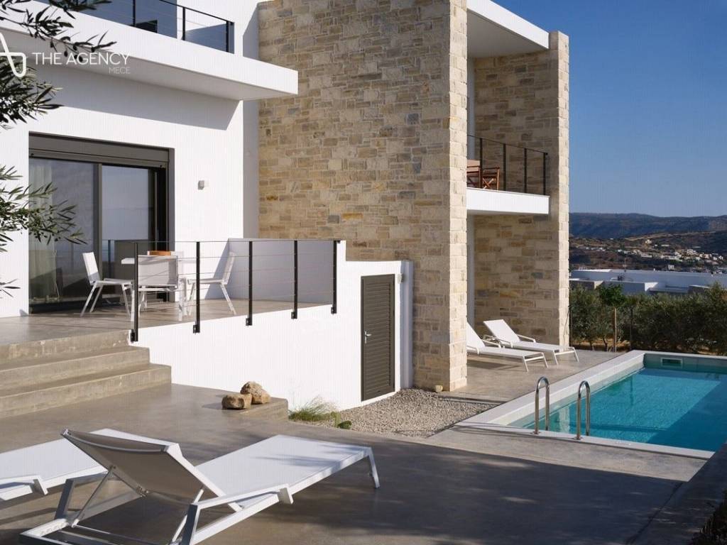 Discover this luxurious villa for sale in the picturesque village of Kamilaris, in the Heraklion area of Crete. With a total area of 160 sqm and a plot of 2000 sqm, this villa combines stunning sea and mountain views with modern comforts, offering an ideal space for permanent residence or a vacation home. The residence is spread over two floors and features: 2 spacious bedrooms with views and direct access to the pool 2 fully equipped bathrooms Modern open-plan kitchen of high quality Bright and spacious living and dining area Laundry room Private floor with large bathroom and shower Balcony with panoramic views of the sea and mountains The villa is energy class A+, equipped with: Photovoltaic panels for energy autonomy Heat pump Underfloor heating Fan coils for cooling and heating Outdoor spaces include: Landscaped garden with olive grove Private swimming pool with sunbathing area Panoramic views of the sunset and the sea Location: Kamilaris is a traditional village of Mesara, just 67 km south of Heraklion and within close proximity to the archaeological site of Phaistos and the beach. The peaceful and authentic environment offers ideal conditions for quality living and investment in a property with high value. Frequently Asked Questions (FAQ) What is the energy class of the villa? The villa is energy class A+, equipped with photovoltaic panels and modern heating and cooling systems. How close is the villa to the sea? The villa is located 2.5 km from the sea, offering easy access to the beaches of Mesara. Is the villa suitable for permanent residence? Yes, the villa offers all modern comforts and is ideal for both permanent residence and vacation use. Is there a private garden and pool? Yes, the villa has a private landscaped garden with an olive grove and a large pool with sunbathing area. Contact: Pitsouli Paraskevi +30 6939 400410 theagencymece@outlook.com www.theagencymece.gr THE AGENCY MECE – Your luxury lifestyle begins here!