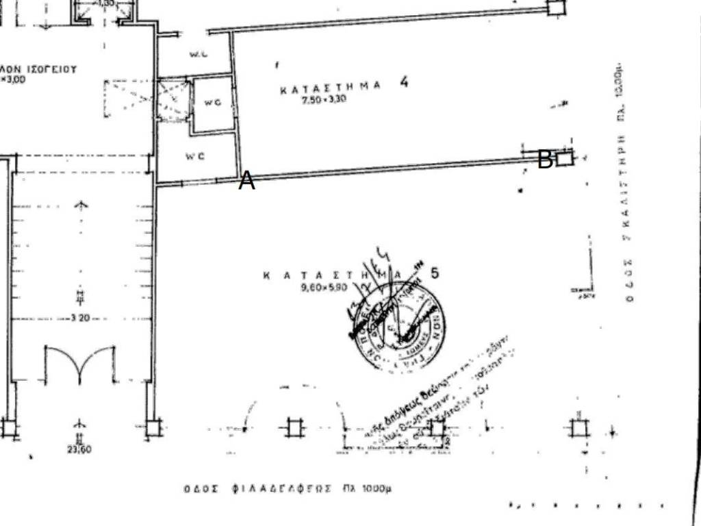 Corner retail store in the area of Kato Patisia with a total facade of 19 meters on Skalistriri and Filadelfeos Streets. It occupies part of the ground floor of a residential building constructed in mid-60's.