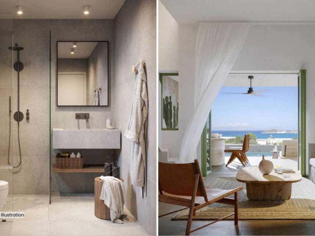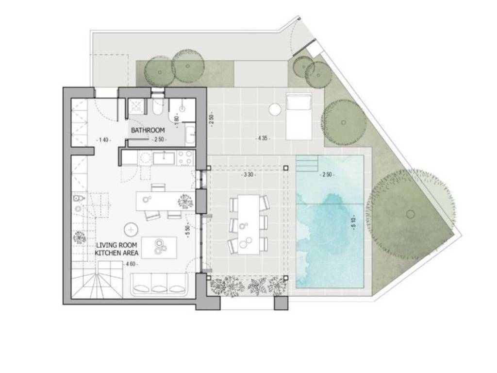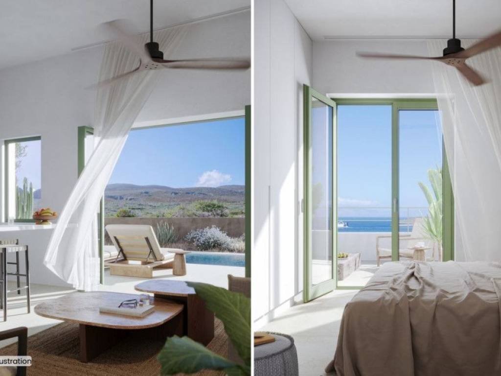 Modern two-level Villa (4/Y3) with 82.16 sq.m. living areas, located in the charming island of Kythira. This property is situated in Diakofti seaside village, just a few meters from the turquoise waters of Kythira coastline. The residence splits in two levels of covers 41.08 sq.m. each and includes 2 bedrooms and 3 bathrooms, suitable to host up to 5-6 guests. Ground floor includes a large area with the living room and the kitchen and a bathroom. In the ground floor level there is a terrace and a outdoor pool. The two bedrooms are situated in the 1st floor and both of them feature en-suite bathrooms. A beautiful yard offers cozy moments with family and friends, suitable for a much needed carefree relaxation time on a summer vacation. Diakofti is a picturesque village on the eastern coast of the island, with crystal-clear turquoise waters, sandy beaches and magnificent views. The village is just 10' driving distance from the airport, while Kythira's main port is located only a few minutes away from the property. The villa is ready and fully furnished. It is offered at a pre-sale price of € 360.000.