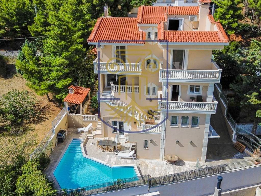 For Sale – Luxury Villa 550 sq.m. on a 750 sq.m. Plot in Thrakomakedones A stunning 550 sq.m. villa is available for sale on a 750 sq.m. plot, distinguished by its elegance, comfort, and top-quality construction. This property represents an ideal choice for a primary residence, a holiday home, or an investment opportunity. The villa features 7 bedrooms (including a master suite), 3 living rooms, 3 kitchens, 4 bathrooms, and 3 WCs. The interior spaces boast luxurious Penteli marble, wood, and tile flooring, while aluminum frames with double glazing and insect screens ensure excellent sound and thermal insulation. Independent heating per floor, air conditioning, a boiler, and ventilation systems provide maximum comfort, while the internal staircase and elevator facilitate movement between levels. The exterior of the property includes a beautiful swimming pool, a landscaped garden with automatic irrigation, a BBQ area, and an inner courtyard, perfect for relaxation and social gatherings. Additionally, the villa offers high security with a reinforced door, alarm system, surveillance cameras, video intercom, and satellite TV, and is equipped with three-phase electricity and a night-time electricity tariff for cost-efficient operation. The villa is through-and-through, with multiple façades, includes a storage room and a service room, and benefits from zero common expenses, enhancing its appeal. Its privileged location in Thrakomakedones offers panoramic mountain views, while the east-southeast orientation ensures abundant natural light and tranquility. This is a rare investment opportunity combining luxurious living, high-quality construction, and a prime location, making it an exceptional choice for those seeking the ultimate lifestyle in one of Attica’s most desirable areas. The property is also available for viewing via a virtual tour. Please Note: Address Disclosure: The exact address mentioned in the advertisement is indicative of the property's vicinity and not the actual one.