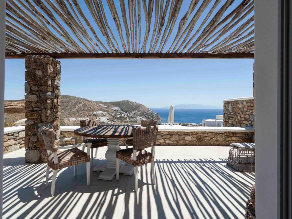 An elegant 134-square-meter villa, ideally located just one kilometer from the renowned Elia Beach, celebrated for its golden sands and crystal-clear waters. The property boasts mesmerizing, uninterrupted views of the Aegean Sea, creating a truly serene and luxurious setting. Designed with modern aesthetics and attention to detail, the villa blends seamlessly into its natural surroundings. Its smart layout ensures both comfort and privacy, making it a perfect getaway while offering convenient access to the beach and local amenities. This villa combines contemporary living with Mykonos’s timeless charm, offering a rare opportunity to enjoy an exclusive lifestyle in one of the island’s most sought-after areas. The villa is part of a premium complex of four residences, each with its own distinctive features. Villa Maris II enjoys a 25% co-ownership of a 4,000 sqm plot, providing access to the beautifully landscaped grounds. At the same time, it offers a private, exclusive-use area, allowing owners to enjoy their personal oasis in complete tranquility. This unique arrangement balances the benefits of a shared luxury community with the privilege of having your own secluded retreat. This villa is adjacent to the neighboring property, which is also on the market. Acquiring both presents a rare opportunity to create an expansive private estate—ideal for those seeking a larger residence with breathtaking sea views and premium amenities. Combined ownership offers the perfect setting for hosting guests or enjoying a serene retreat on the iconic island of Mykonos Mykonos is an island located in South Aegean and is part of Cyclades Islands. The island is one of the most developed tourist destinations in the world and is distinguished for its intense and lively nightlife. Unique Features: Mykonos is a cosmopolitan and glamorous island attracting a large number of Greek and foreign Celebrities who choose the island for their summer holidays. At the same time, characteristic features of Mykonos are its picturesque beauty that anyone can enjoy by walking in its alleys, its wonderful beaches, its luxurious hotels and restaurants. What makes it so special is the fact that it satisfies all requirements, offering visitors who love nightlife a multitude of bar options but on the other hand every visitor can discover the rich history of the island, sightseeing and archaeological sites. Accessibility: Mykonos is accessible from the port of Rafina and Piraeus, ferries depart several times a day and during the summer season at least three ferries depart in the morning and one or two in the winter. Also, Mykonos can be reached by plane as the island has an Airport with several flights operating mainly during the summer period when demand is high. Investment Opportunity: Buying a property in Mykonos is a huge investment with a continuous and growing investment interest as it attracts tourists and investors from all over the world.