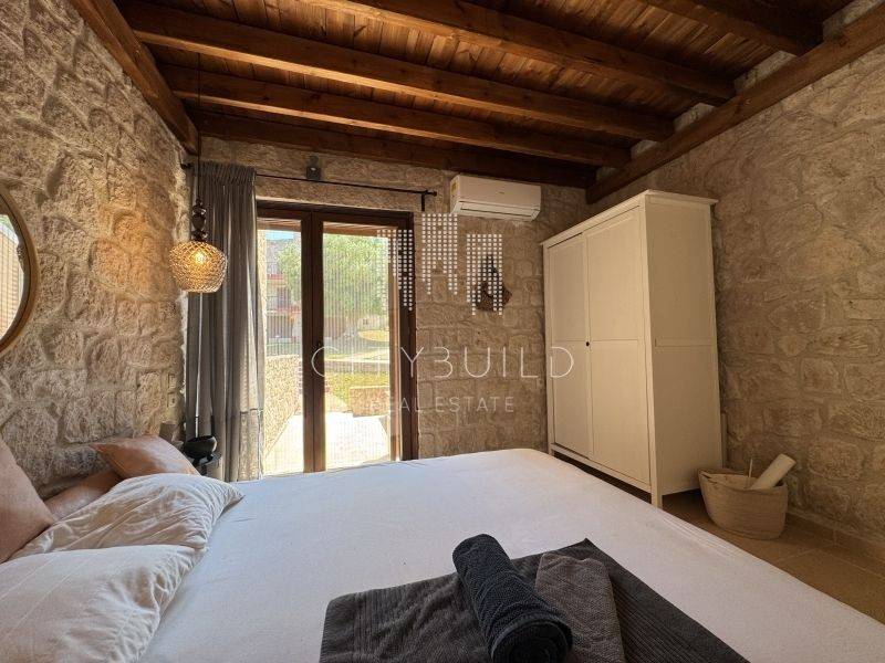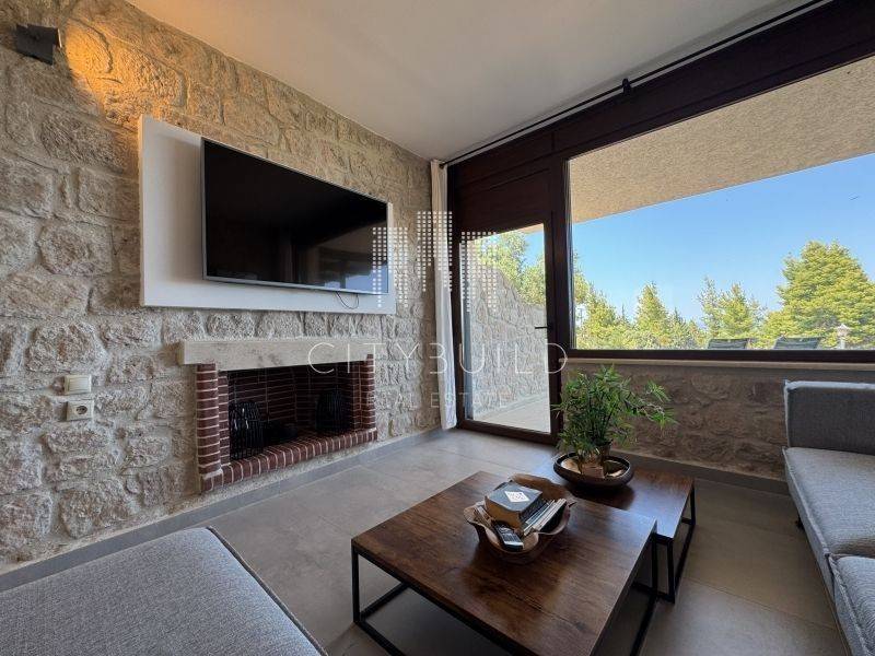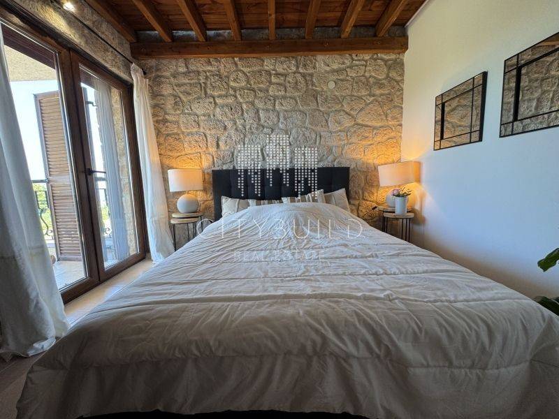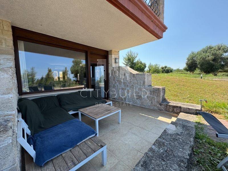 Property Code: 2-1374 - Apartment FOR SALE in Kassandra Kassandreia for € 400.000 . This 100 sq. m. furnished Apartment is on the Ground floor and features 3 Bedrooms, an open-plan kitchen/living room, 2 bathrooms . The property also boasts Heating system: Individual - Electric, tiled and wood floors, view of the Sea, Window frames: Synthetic, parking, garden, fireplace, A/C, electrical appliances, insect screens, double-glazed windows, BBQ, open space, balconies: 40 sqm. The building was constructed in 2008 . Building Energy Rating: C