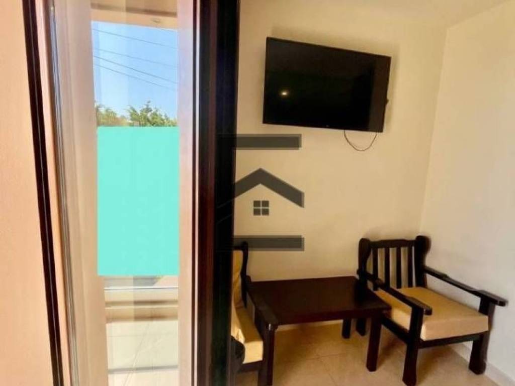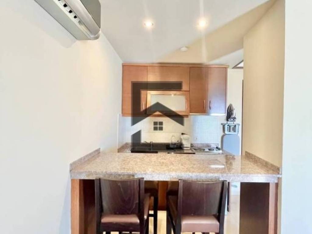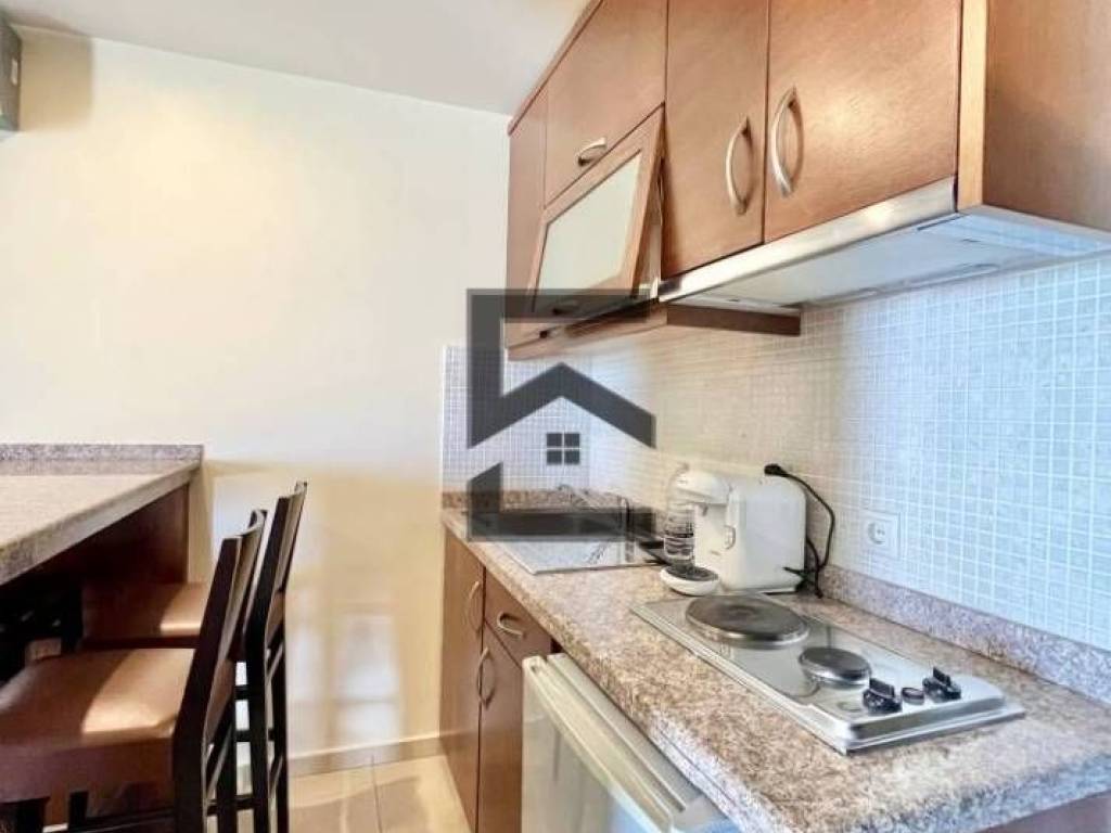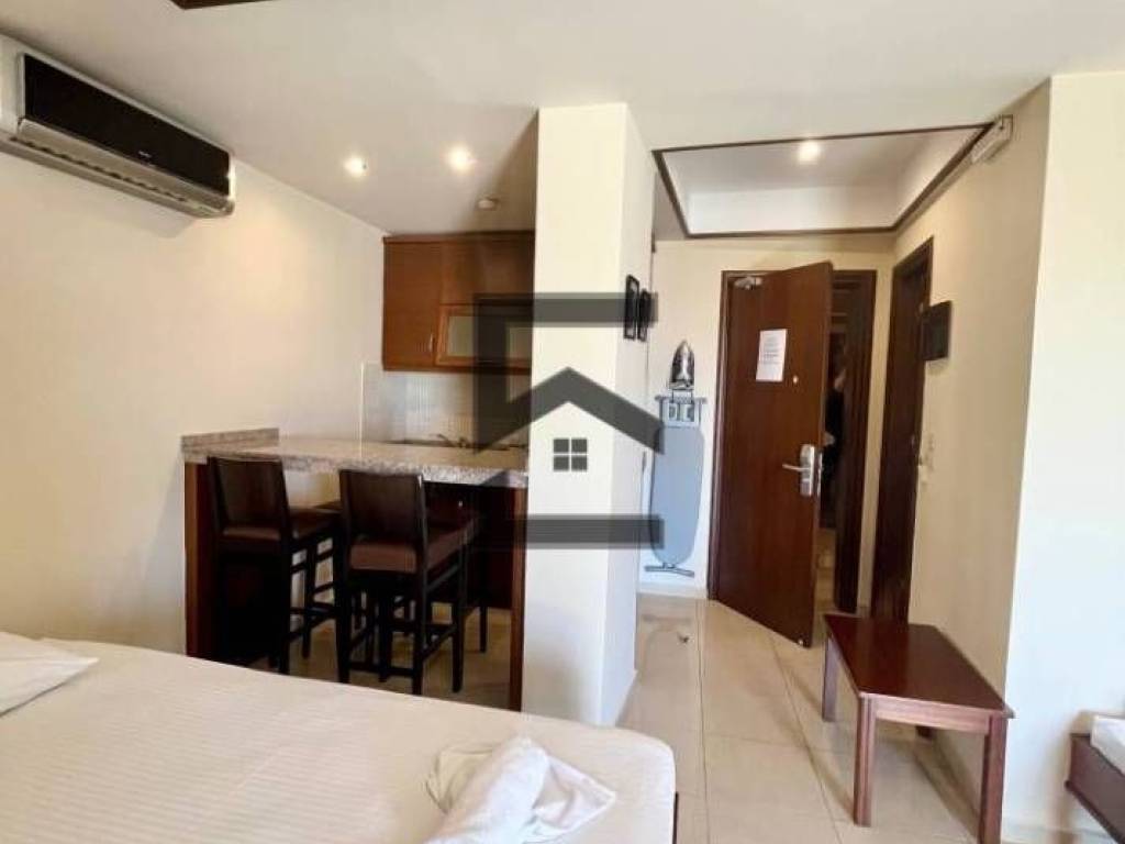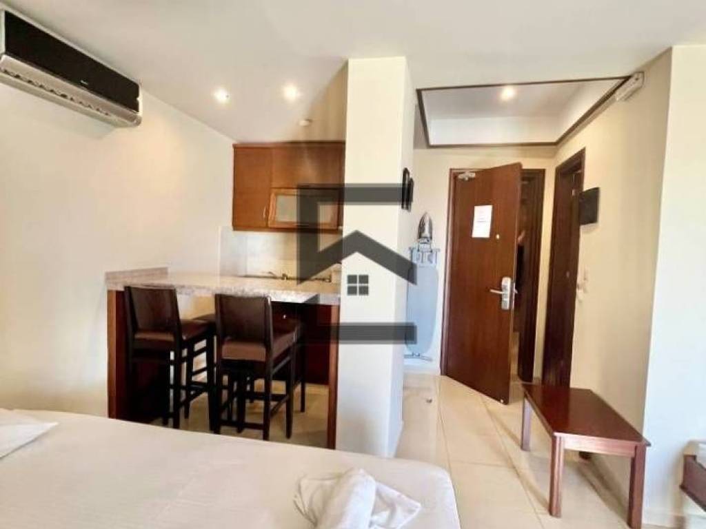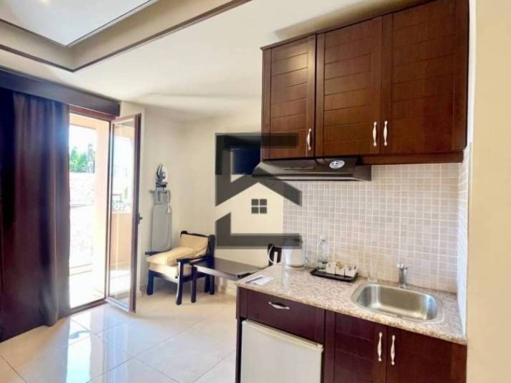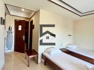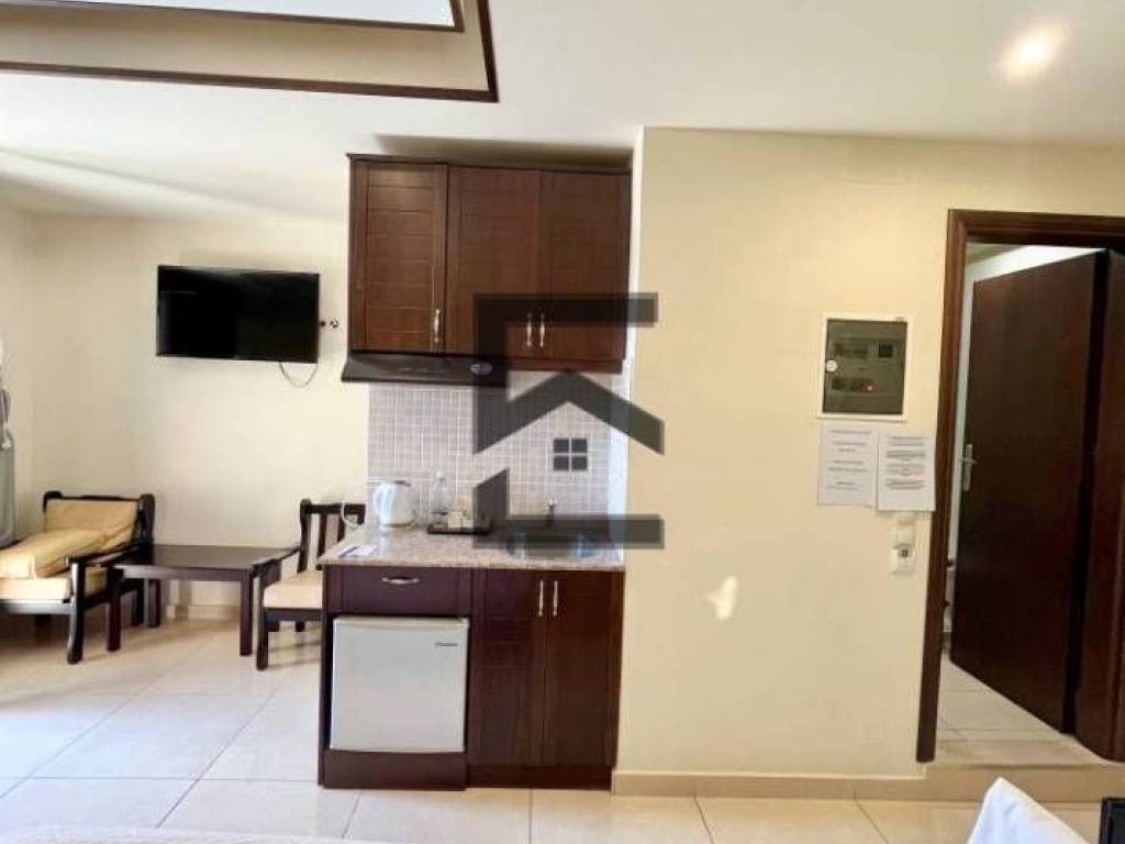 View-wise, the property enjoys mountain view. This property comes fully furnished (beds, wardrobe, kitchen table, chairs, refrigerator) with ceramic tiles flooring.