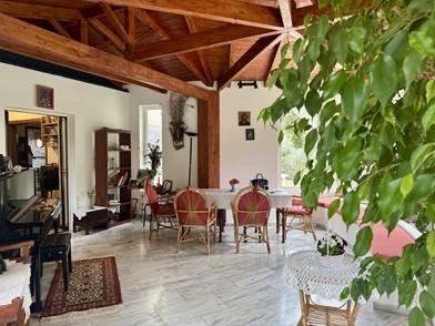 Rio, Kato Kastritsi - Detached House 316sqm plot 4297sqm, bedrooms 6, levels 3, ground floor, year built 1978, energy class G, 2 living rooms, 2 kitchens, bathroom, heating type: autonomous (oil), air condition, parking, parking type/lots, dual aspect apartment, luminous, painted, storage space, fireplace, balconies, garden, wooden frames, door screen, wood & marble floors, night electricity discount rate, luxurious, internal staircase, pets allowed, residential zone, east-southern orientation, access from inclined, investment property, close to sea (up to 1000m).