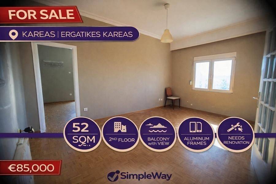 Vyronas, Kareas - Apartment 52sqm bedroom, levels 1, 2nd, needs renovation, year built 1960, energy class D, living room, kitchen, bathroom, heating type: no heating, luminous, unobstructed view, frontage, aluminum frames, pets allowed, residential zone, price is negotiable.