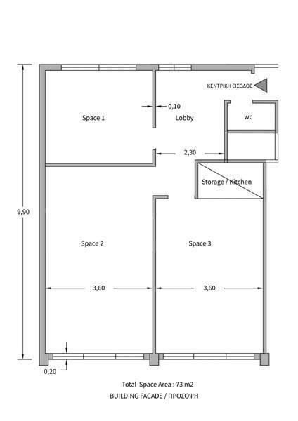 Mousio - Polytechnio - Office 73sqm spaces 3, levels 1, 4th, renovated, year built 1979, energy class E, wc, heating type: autonomous, air condition, luminous, corner, open space, elevator, aluminum frames, laminate floors, within city plan.
