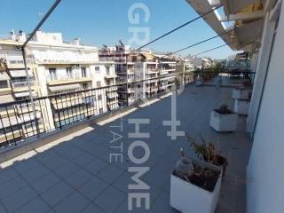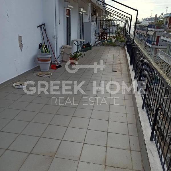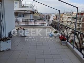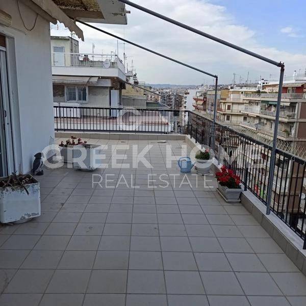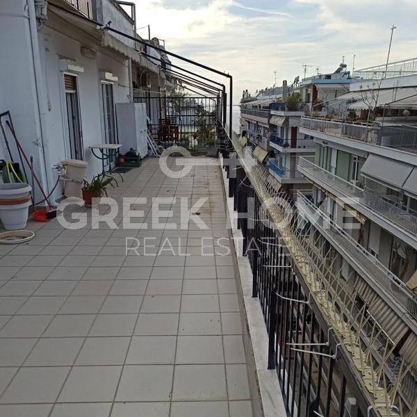 Thessaloniki, Nea Paralia - Apartment 125sqm unfurnished, bedrooms 2, 7th, excellent condition, year built 1965, energy class E, living room, hall, kitchen, bathroom, wc, heating type: autonomous (electricity), air condition, quiet, dual aspect apartment, luminous, corner, unobstructed view, frontage, electric roller shutters, balconies, large balconies, balcony 70sqm, tents, elevator, loft storage, aluminum frames, double glazed windows, wood & mosaic floors, separate kitchen, night electricity discount rate, secure door, luxurious, pets allowed, eastern orientation, price is negotiable, close to sea (up to 100m), close to super market (up to 5m).