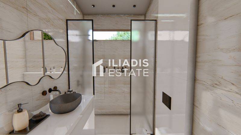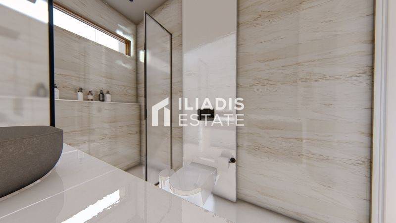 A detached, single storey house (70 m²) is for sale in a high aesthetic residential project of 7 unique villas built on an amphitheatrical plot of 1200 m² in Kerdylia. The property offers uninterrupted sea views and is only 180 metres from the coast, nestled in a quiet natural setting combining sea and mountain.