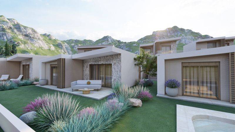The villas in the Alto Mare Villas development stand out for their modern architectural design, combining elegance with functionality. Clean lines, stone-clad facades, and contemporary materials result in a refined aesthetic that blends beautifully with the surrounding nature.