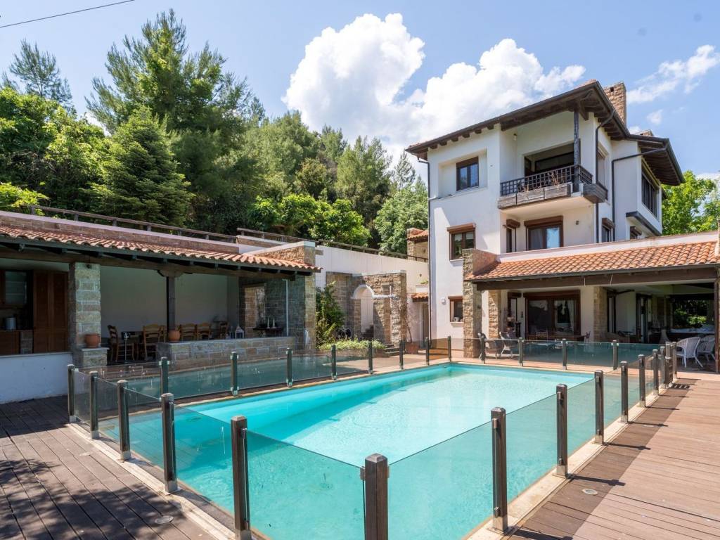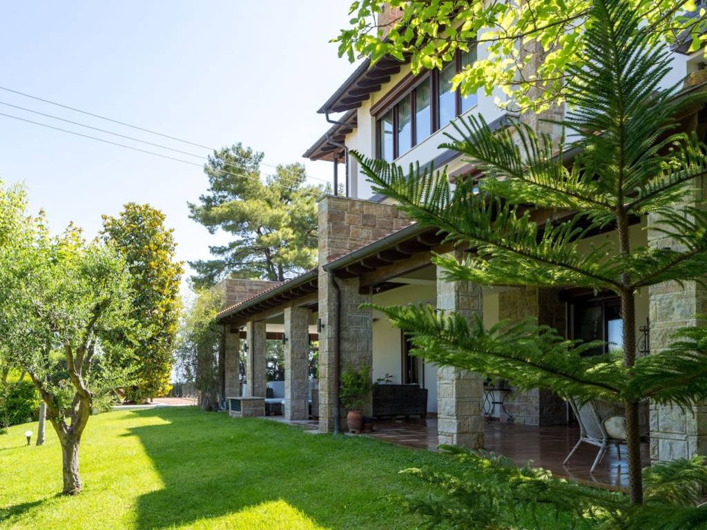 Escape to the epitome of luxury living in the heart of Polychrono, Chalkidiki. Discover a breathtaking villa that embodies exclusivity, sophistication, and unparalleled opulence. Step into a world of grandeur as you enter this spacious villa, boasting 672 sqm of sheer elegance. Immerse yourself in the embrace of luxury with living spaces meticulously divided into two lavish maisonettes and a stunning apartment on the second floor. Each exquisitely designed, offering seamless transitions between opulent interiors and picturesque outdoor vistas. Indulge in a lifestyle of unparalleled comfort and convenience, where every detail has been carefully curated to cater to the most discerning tastes. Take a dip in the expansive pool, basking in the warmth of the sun as it shimmers on the crystal-clear waters. Explore the dedicated, fully equipped BBQ area, where you can create culinary masterpieces amidst a backdrop of serenity and natural beauty. Inside, a symphony of elegance unfolds. Experience the seamless integration of modern technology with the smart house system. The excellent audio system envelops you in a world of harmonious melodies, creating an atmosphere of pure bliss. With six luxurious bedrooms and eight bathrooms, this villa effortlessly accommodates your family and guests in style. A cellar and warehouse provide ample storage space, ensuring your treasures are kept safe and secure. The magnificent garden, sprawling across 1200 sqm, invites you to explore its hidden corners. Contact us now and seize the opportunity to experience a life of unparalleled elegance. Your dream villa awaits. Kassandra is the westernmost peninsula of the Halkidiki trident, close to the Metropolitan Center of Thessaloniki. Unique Features: Kassandra provides its guests with everything they need for an unforgettable vacation. Beaches that satisfy your most demanding expectations, forests that beg to be explored, archaeological sites that take you on a journey to a majestic past and local products of high culinary value. Accessibility: Kassandra is located at a distance of 80 km from the International Airport of Thessaloniki, with which it is connected via the national highway Thessaloniki - Halkidiki. Investment Opportunity: The area of Kassandra, due to its unique tourist character and the short distance from Thessaloniki International Airport, has been a top choice for real estate investments in recent years, both in the hospitality and residential sectors, attracting significant investments from Central Europe, the Middle East and the wider Balkan area.