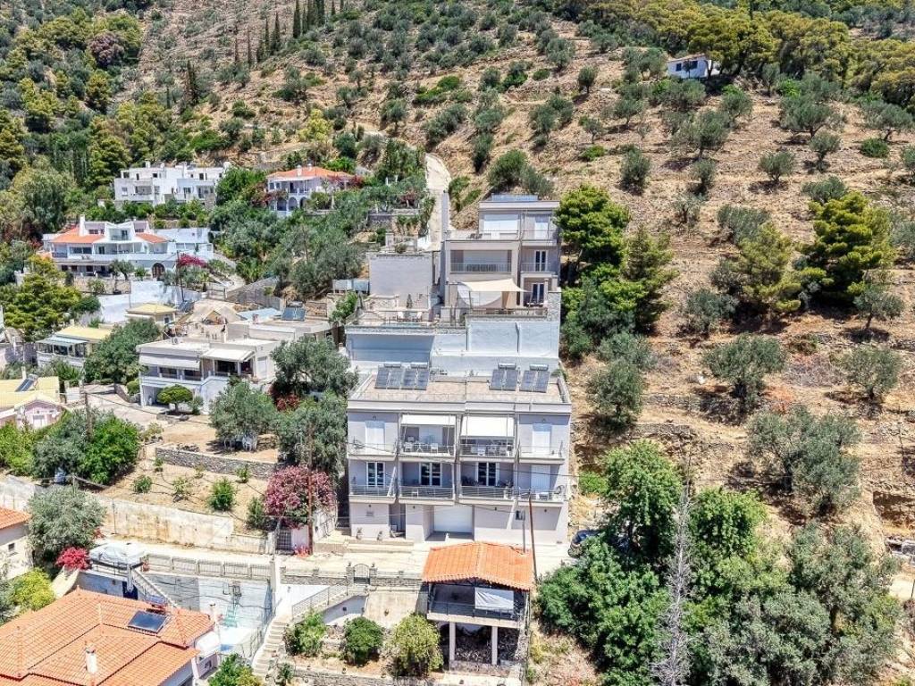 Introducing a rare opportunity to acquire a meticulously constructed apartment complex located in the sought-after area of Poros, just 450 meters from the beach and a short 2km from the Port of Poros. This elegant three-level property comprises four spacious apartments, each thoughtfully designed to offer modern comfort and functionality. The layout includes: • First Floor: 2 Apartments — each featuring 2 bedrooms, 1 bathroom, open plan kitchen and living area • Second Floor: 2 Apartments — each featuring 2 bedrooms, 1 bathroom and open plan kitchen and living area • Ground Floor: A generous auxiliary area (approx. 202 sq.m) that includes: o A beautifully landscaped courtyard o Private garage with 4 parking bays o Dedicated laundry area o 4 secure storage areas Each apartment spans approximately 79 sq.m, resulting in a total built area of approximately 518 sq.m, all set on a 395 sq.m plot. The property boasts top-quality construction with a focus on durability, functionality, and modern aesthetics. Investment Highlights: • Panoramic sea views from multiple vantage points • Immediate rental potential with an estimated ROI of 5% • Ideal configuration for short-term holiday rentals, long-term leases, or boutique hospitality • Prime location – walkable to the beach and close to the port, shops, and dining • Turnkey asset in one of Greece’s most serene and picturesque island destinations This property is a rare find for discerning investors seeking a high-performing income property or a prestige asset in a high-demand coastal location. Poros is a lush, green island in the Saronic Gulf, renowned for its natural beauty, traditional architecture, and relaxed cosmopolitan atmosphere. Located just across from the Peloponnese town of Galatas and only about an hour from Athens by hydrofoil, it offers easy access while retaining a peaceful island charm. Poros features pine-covered hills, crystal-clear beaches, a vibrant marina, and rich historical character—making it an ideal destination for both weekend escapes and year-round living in a safe and serene environment.