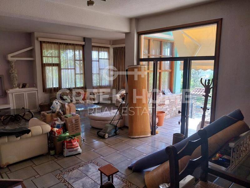 Pefka, Delasal - Maisonette 312sqm plot 400sqm, unfurnished, bedrooms 4, ground floor - 1st - attic, very good condition, year built 1987, energy class C, living room, hall, kitchen, 2 bathrooms, wc, heating type: autonomous (oil), air condition, parking covered, quiet, dual aspect apartment, luminous, panoramic view, frontage, storage space, fireplace, balconies, tents, garden, wooden frames, double glazed windows, ceramic tiles floors, separate kitchen, secure door, alarm, luxurious, barbeque, pets allowed, east-western orientation, close to sports facilities (up to 100m), close to school (up to 100m).