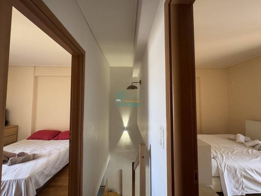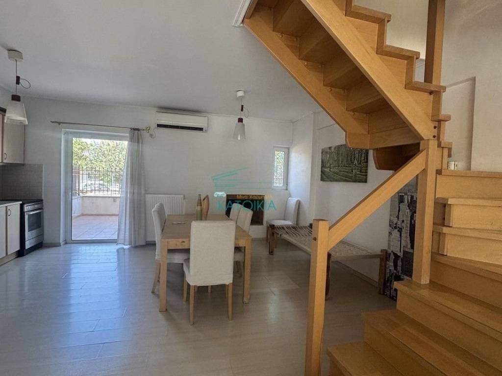95 sq.m. Maisonette - Bright, Functional, and in a Great LocationDiscover this exceptional 95 sq.m. maisonette, ideal for those seeking comfort, bright spaces, and quality of life in a quiet and well-maintained neighborhood. On the ground floor, the bright living room with a fireplace offers a warm and welcoming atmosphere, in an open-plan layout with the kitchen - perfect for everyday living or entertaining. The large front balcony provides ample space for outdoor dining and enjoyable barbecues with friends and family. The upper floor features two spacious bedrooms, each with its own balcony, as well as a comfortable bathroom. The property includes autonomous oil heating, ensuring both energy efficiency and warmth throughout the winter. It is located in a very good and peaceful area, ideal for families or couples who wish to live in a beautiful and tranquil environment without being far from the city. code 57520
