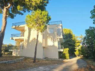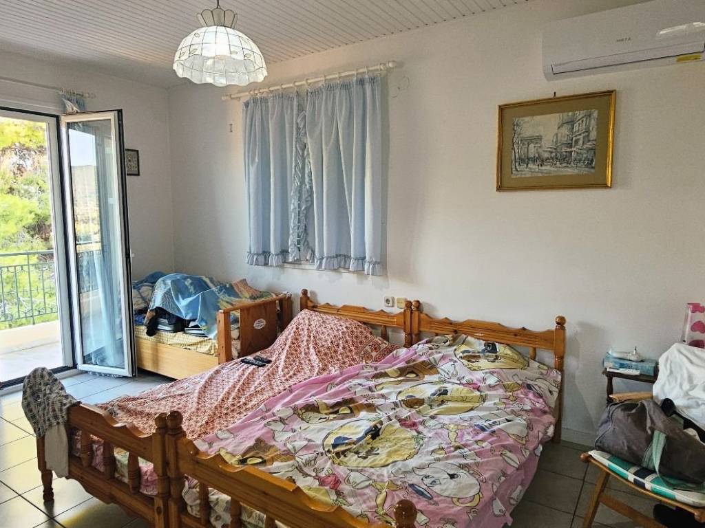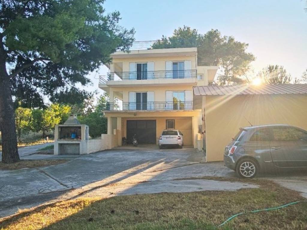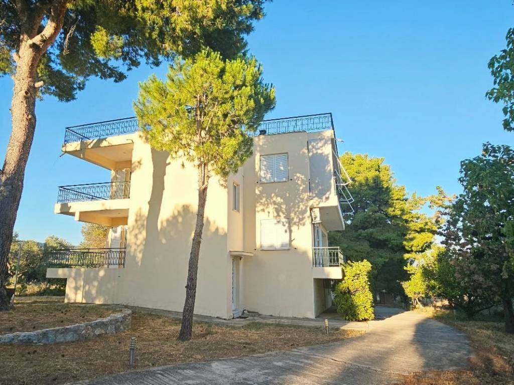 For sale by exclusive mandate 225 m2 building on a 4.800 m2 plot with panoramic sea views, in Pefkias area, in Paralia Politikon. The property is located in a quiet spot of natural beauty, just 500m from Politika Beach. The building consists of 3 floors. The 1st and 2nd floors include 2 apartments of 75 m2 each, with comfortable verandas and views of both the settlement of Politika and the sea. Each apartment consists of a comfortable living room with open kitchen area, 2 bedrooms, 1 of which is a master, and 1 bathroom. The 2nd floor apartment includes additionally a fireplace and awnings at its veranda. The ground floor area of 75 sq m includes a 30 m2 studio, a 23 m2 home cinema soundproofed room, fully equipped with projection and sound systems, as well as a workbench and space for the oil boiler. The building is of earthquake-resistant construction with connecting beams and is accompanied by a static study. It also has double external walls with insulation. It includes a connection to three-phase electricity, heating by oil radiators, 5 air conditioners, aluminum double glazed windows, septic tank and an in-line absorption septic tank, and has a central connection to an oil generator in the event of a power outage. The plot on which the property is located has a 60m deep water drilling which supplies both the house and the large garden which includes 77 trees, among which 11 large pine trees, 22 olive trees, 3 pomegranate trees, 3 fig trees and various ornamental plants. It also includes a high-ceilinged garage of 50 m2 for hosting a boat, a barbeque, a small lake with a waterfall, a fountain and a playground. In summary, this is a solidly built building with great autonomy, located in a lush Mediterranean environment with stunning views and close access. It is 5 minutes’ drive from the settlement of Politika, 36 minutes from the city of Chalkida, and 1 hour and 30 minutes from Athens International Airport.