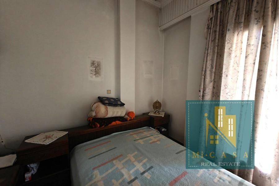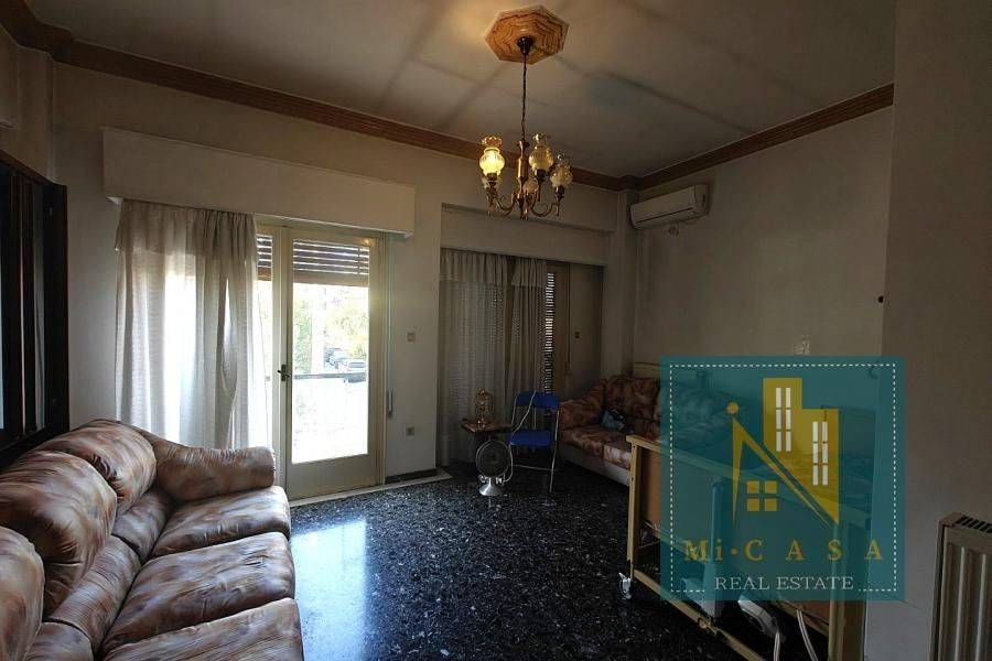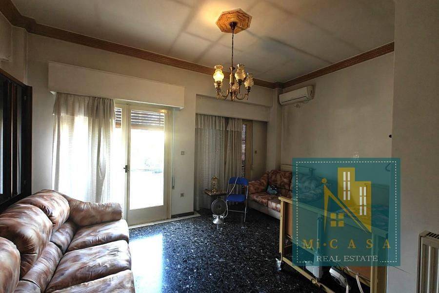 For sale in Egaleo: 75 sq.m apartment built in 1970 with 2 rooms on the 1st floor. Available now, with air-conditioning and autonomous oil heating. Features mosaic and wood floors, wooden window frames, and energy class E. Zoned for residential use, facing north-east with a dual-aspect position. Frontal access from asphalt road, includes awnings, bathroom, solar water heater, and storeroom. Bright property with ID 1687.