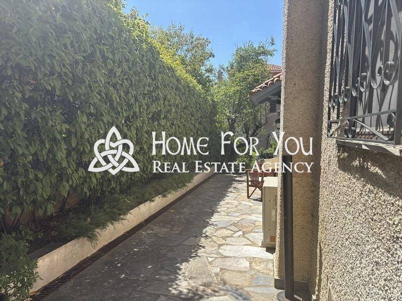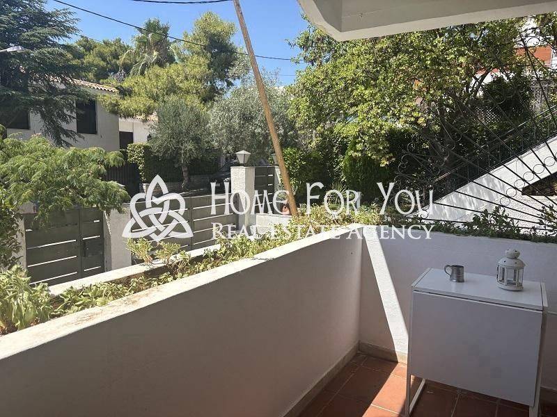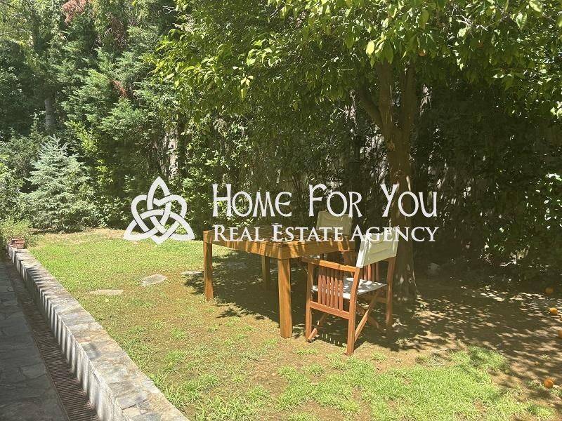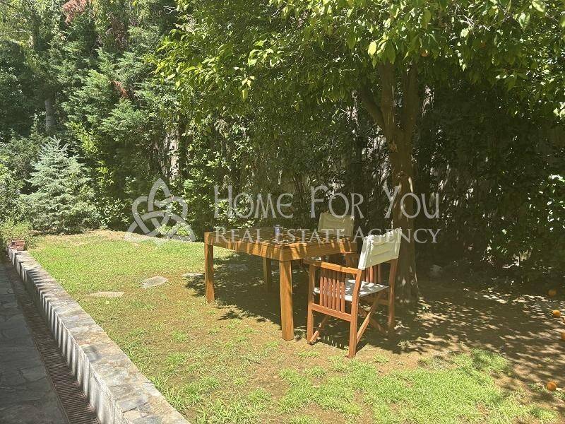 Lovely ground floor sunny full of natural light 1 bedroom apartment with very spacious sitting/dining room + lovely wood floors - in the sitting - veranda to the front of the house, separate large kitchen with dining area - access to back patio, good size bedroom with ensuite bathroom and fitted wardrobes, guest wc. The apartment has new aluminon double glaze windows and shutters, an alarm system in, independent oil heating as well as air condition hot and cold. The apartment is located on a very nice quiet street and is max a 3 minute walk to Politia Square and approximately 20 minute walk to Kefalari sq - and Kifissia centre, drive is 3 minutes. Ideal for couple or single person. Really worth viewing.