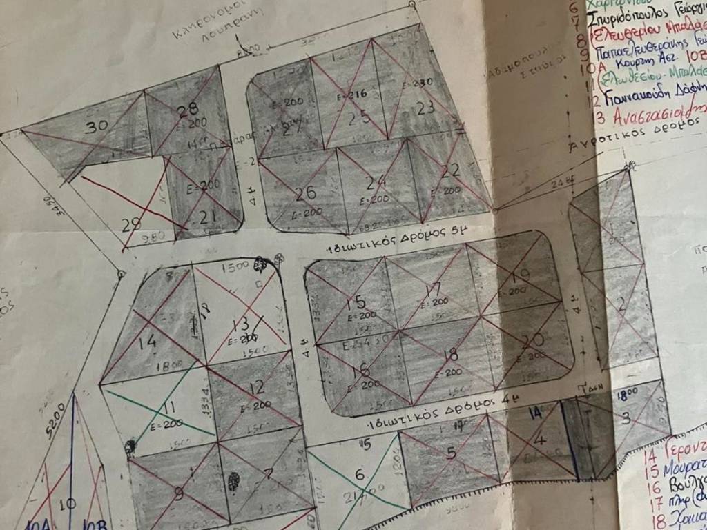 Είναι δύο οικόπεδα το ένα δίπλα στο άλλο α)217Μ2 β)220Μ2 ΣΥΝΟΛΙΚΟ ΕΜΒΑΔΌΝ 437Μ2 Περιβάλλονται από δύο κοινοτικούς δρόμους ΝΔ από την πλευρά της όψης Ν δεν γειτνιάζει με άλλη ιδιοκτησία αλλά με κοινόχρηστο από την Β και Α πλευρά με άλλες ιδιοκτησίες. Το 217μ2 έχει περίφραξη και13 δένδρα ελιές υπάρχει και μία μελέτη κατασκευής η οποία δεν υλοποιήθηκε.