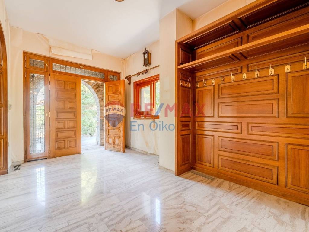 NEA PENTELI | Unique Detached House in a Prime Location. In one of the most charming and peaceful areas of Nea Penteli, nestled in greenery and offering panoramic views, this distinctive detached residence of 439.20 sq.m. is set on a rare 1,445 sq.m. plot. The property unfolds across three levels and offers generously sized spaces with excellent architectural features and high-quality materials. The ground floor includes a spacious living room with a marble fireplace, separate dining room, a cozy sitting area with a second fireplace, large kitchen, guest WC, and utility rooms. The first floor features four bright bedrooms (including one master), two bathrooms, a sitting room, a small kitchenette, and ample storage space. All rooms have access to wide balconies with unobstructed views of the natural landscape. The semi-basement can function as an independent residence, offering a large living area with fireplace, kitchen, WC, cellar, auxiliary rooms, and a private entrance. Outside, the mature garden with stone details, BBQ area, well, and tall trees provides a rare sense of peace and privacy. This property presents a rare opportunity to create a stately home full of characte with remaining buildable area, in one of the most desirable locations of Penteli. (RE/MAX ID:1042-514) RE/MAX Εν Οίκω, Τηλέφωνο Επικοινωνίας: 2106085670, email: info@remax-enoiko.gr