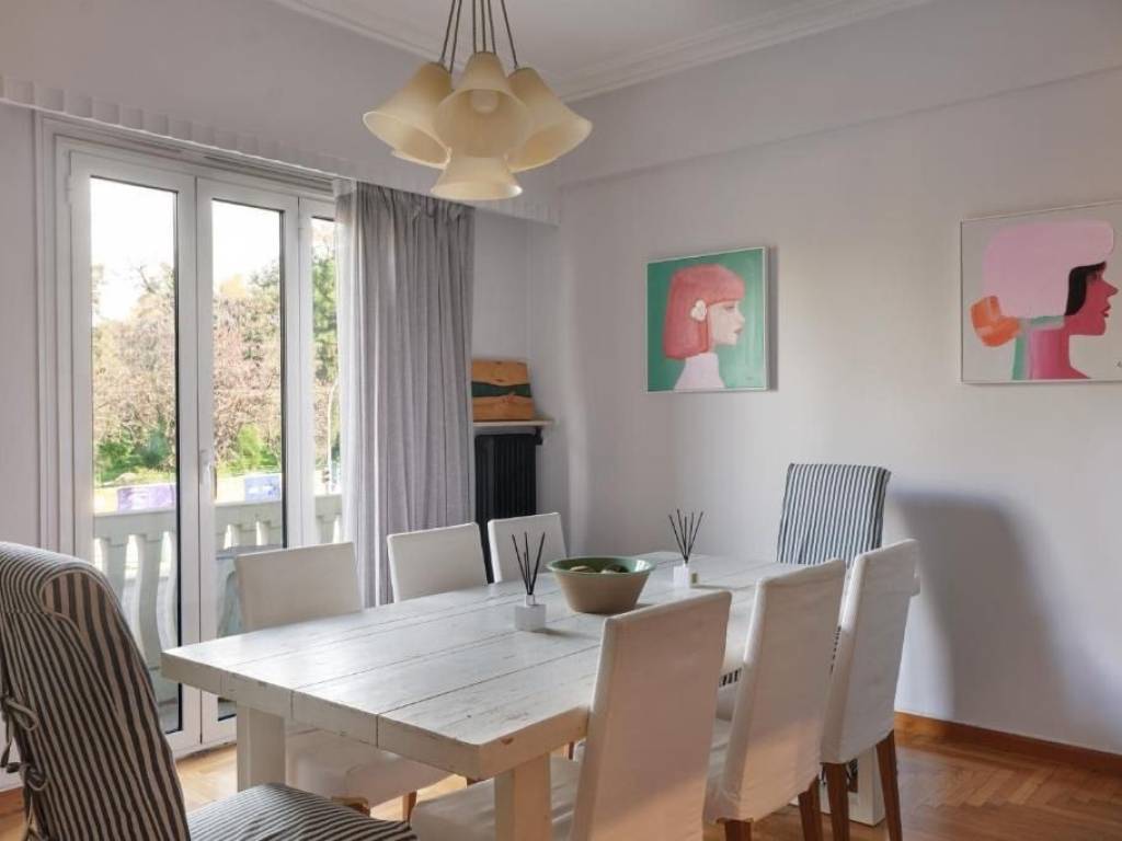 A spacious and beautiful 1st floor apartment harmoniously combining modern and timeless style in the heart of Athens opposite the Pedion of Areos. Completely renovated and furnished. It consists of 2 living rooms which one can be used as a bedroom or office, dining room, kitchen, 2 bedrooms, 3 bathrooms and balconies. The floors consist of natural wood parquet and tiles in the kitchen and bathrooms. The apartment is equipped with air conditioners, smoke detectors, 3 TV's white appliances. It is ideal for long and short term rental for professionals and families. Price : 1.500 € Exclusively at KSP Realestate www.ksprealestate.gr info@ksprealestate.gr +30 699 308 8433