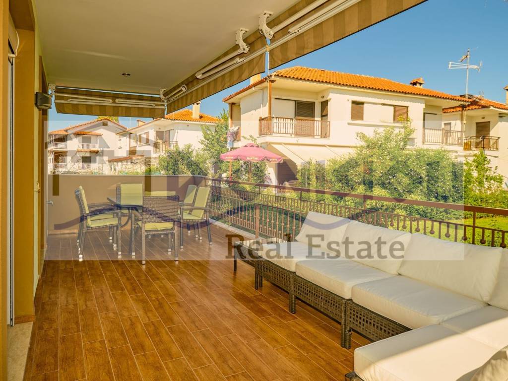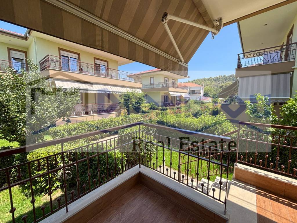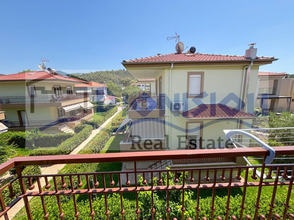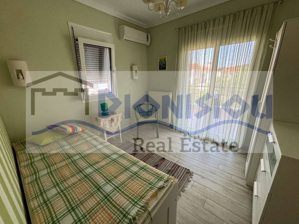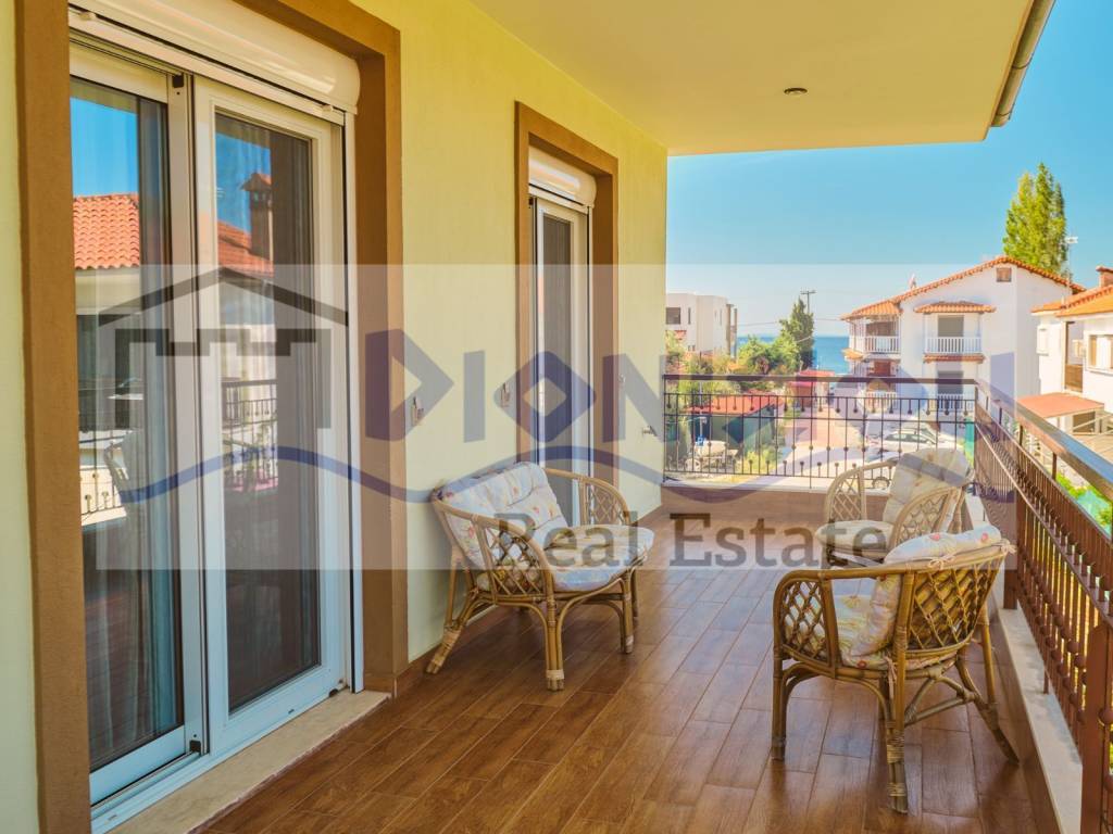 The house is located in the suburbs of Neos Marmaras, only 200 meters to the famous Paradisos beach. The house is located in the complex of 5 houses with a communial garden. There is a private garden 50 sq. meters with an automatic watering system. There is a side sea view from the house. The high ground floor consists of a living room with a fireplace and a kitchen, a bathroom and a large balcony. The 1st floor consists of 2 bedrooms, a bathroom and a balcony. There is the basement floor (35 sq. meters) with an entrance from outside. The house is for sale with furniture and electrical appliances. Individual heating system, security door, 3 airconditions, solar heating system, additional water tank, sunshade tents, parking. ID property: 2208 Dionisiou Real Estate 63200 Dionisiou Beach, Halkidiki Τ. +30 23730 23717 +30 6959 591225 email: dionisiourealestate@gmail.com www.dionisiou-realestate.com www.dionisiou-realestate.ru Caution ! For the indication of the property it is necessary to show your ID and your Tax number according to Law 4072 / 11-4-2012 Government Sales Law 86A The exact point on the map does not correspond to the actual address of the property.