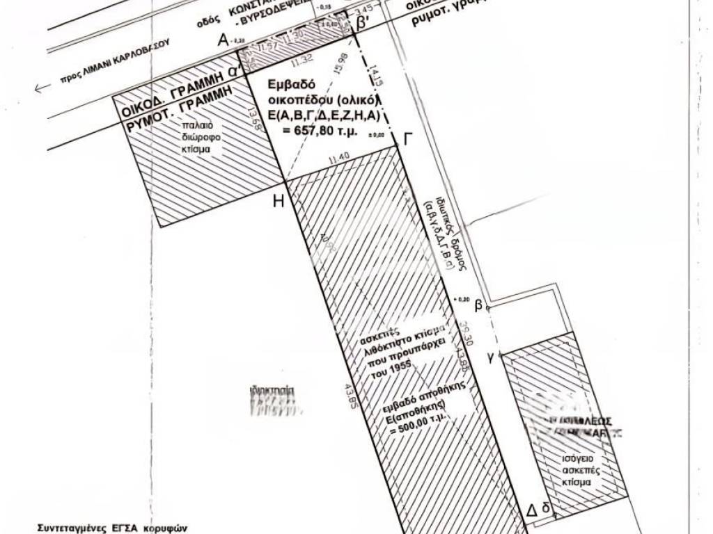 Property Code. 323453 - Plot FOR SALE in Samos Karlovasi for € 270.000 . Discover the features of this 658.00 sq. m. Plot: Distance from sea 30 meters, Coverage Coefficient: 70.00 it comes width a building