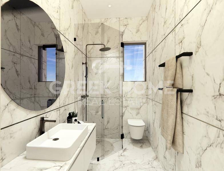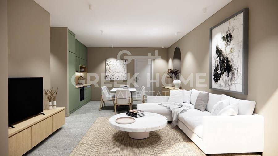 Moschato - Apartment 67sqm unfurnished, bedrooms 2, 3rd, under construction, constructionstage concrete, year built 2025, energy class A+, living room, hall, kitchen, bathroom, heating type: individual unit (natural gas), parking covered, quiet, dual aspect apartment, luminous, corner, frontage, painted, electric roller shutters, storage space, solar heater, external thermal insulation, balconies, large balconies, elevator, garden, thermal shut-off frames, double glazed windows, door screen, ceramic tiles floors, handicap ramp, without common charges, three phase electricity, secure door, alarm, video doorbell, luxurious, under floor heating, satellite, internet, pets allowed, investment property, special offer, commercial use, close to market (up to 100m).