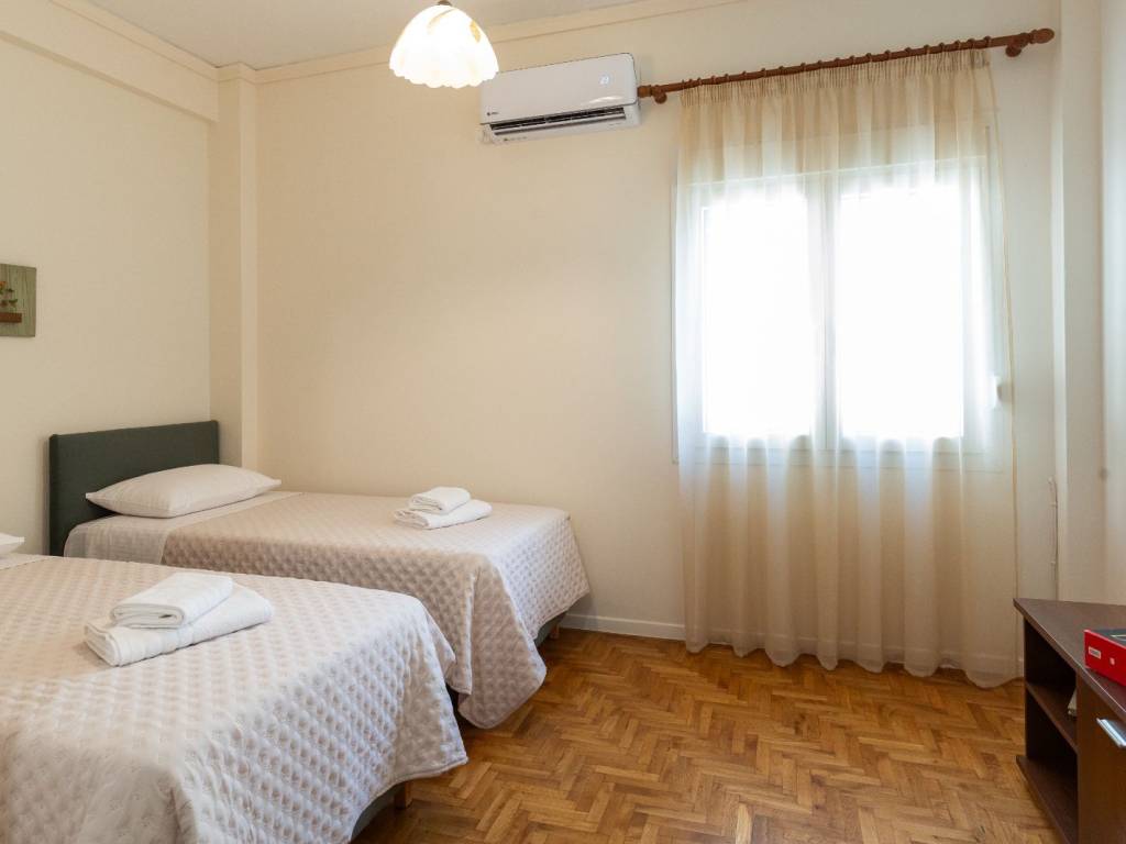The apartment is located at Attiki Square, opposite the Attiki metro station. It was fully renovated in 2024 and is furnished with new appliances and furniture. It has a security door. It is a corner apartment, sunny, and overlooks a large courtyard with trees. It is quiet. Suitable for up to two people.Wifi is also incuded in the price.