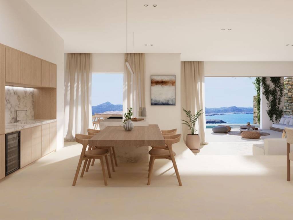 Antiparos Retreat – A Cave Above the Blue is a refined two-level residence that harmonizes with the natural landscape, offering breathtaking sea views and a seamless indoor-outdoor experience. The upper level features an open-plan living, dining, and kitchen area bathed in natural light, with direct access to the terrace. On the lower level, the villa offers one master suite with walk-in closet and en-suite bathroom, and two additional bedrooms with en-suite bathrooms—ideal for children or guests—all opening to a serene garden terrace. Completion is scheduled within 18 months, and the layout allows for tailor-made adjustments to meet your needs. The villa extends outdoors with a private infinity pool, landscaped garden, and built-in fire pit, perfect for entertaining under the stars. Additional features include two private parking spaces, ample storage areas, and total living spaces of 295 sqm. A modern retreat designed for comfort, style, and personalization. Location: Antiparos island is located in the Aegean Sea and it belongs to the Cyclades complex. Unique Features: Antiparos is the ultimate destination for holidays full of relaxation. The island is famous for the abundance of beaches that it offers and the variety of places that are distinguished for their natural beauty. Accessibility:To reach the island of Antiparos you must first go to the port of Paroikia in Paros and from there boats leave for Antiparos, the trip is about 30 minutes. Investment Opportunity: Buying property in Antiparos is a huge investment as the island has been experiencing great growth in recent years, attracting more and more investors.