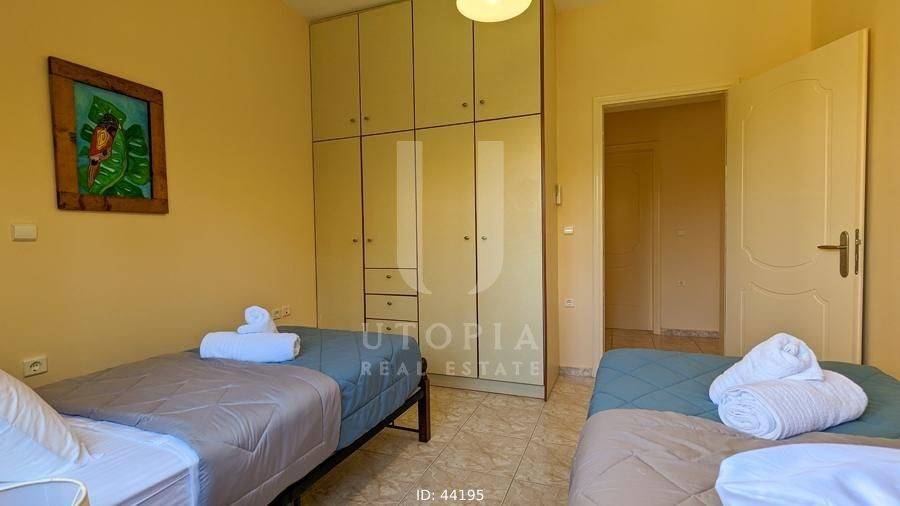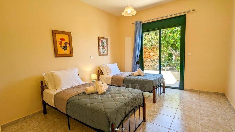 Vamos, Kefalas - Villa 120sqm fully furnished, levels 1, ground floor, year built 2004, energy class A+, living room, kitchen, bathroom, wc, heating type: autonomous (wood), air condition, quiet, dual aspect apartment, luminous, frontage, storage space, solar heater, fireplace, balconies, large balconies, garden, private terrace, aluminum frames, double glazed windows, ceramic tiles floors, secure door, luxurious, private pool, pets allowed, residential zone, investment property (return 0.08%).