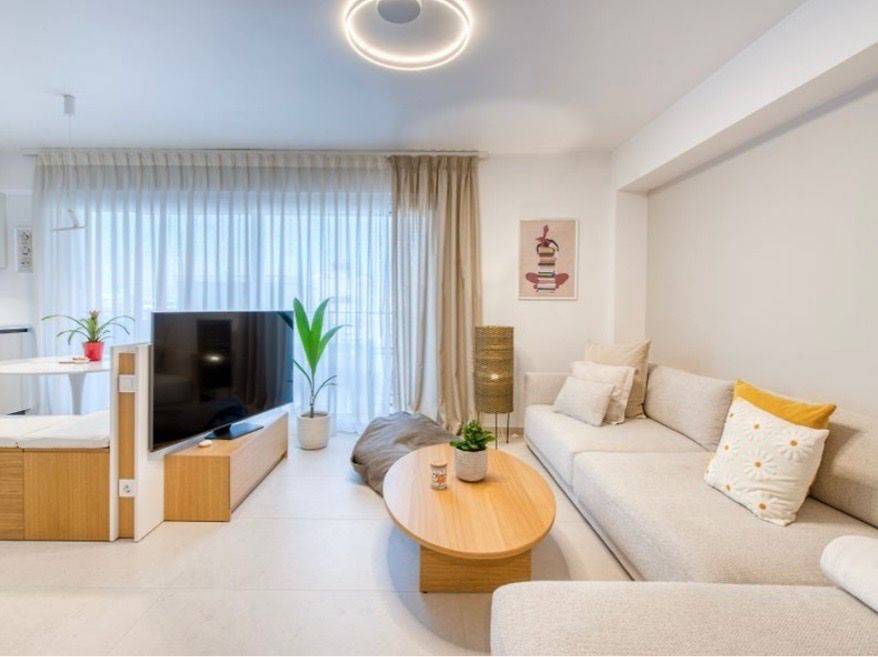 FOR SALE – Luxury 90 sq.m. Apartment in Kalamaria (Karabournaki Area) with Sea View In a prime location in Kalamaria, just 3 minutes from the upcoming metro station and 5 minutes on foot from the pedestrian zone, a newly built 90 sq.m. apartment on the 5th floor of a modern building (delivered in October 2024) is available for sale. Layout & Features: • 2 bedrooms (one master with en suite bathroom) • 1 additional WC • Bright open-plan living room and kitchen • Front and back balconies with panoramic sea views • High-spec Italian kitchen with built-in appliances • Fully furnished with modern design and quality furniture • Private parking space • Basement storage room Ideal location for residence or investment: direct access to public transport, shopping, schools, the sea, and entertainment venues. Sale price: €425,000